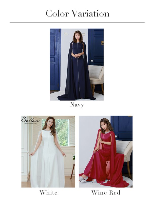 XS-Lサイズあり【SETTAN/セッタン】マント風ロングスリーブ/ シフォン/ ビジュー/ ノースリーブ/ シンプル/ Aライン/ ロングドレス / キャバドレス long[OF2]