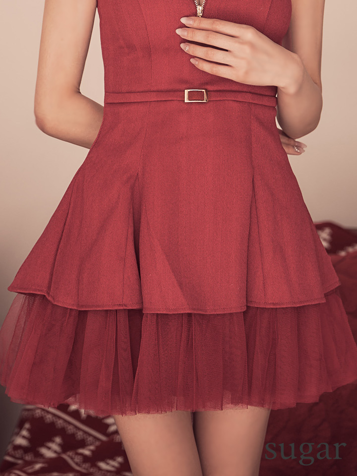 - > XS-Lサイズあり【DEA./ディア】ノースリーブ/ ベルトデザイン/ チュール/ フレア/ ミニドレス/ キャバドレス[OF08]