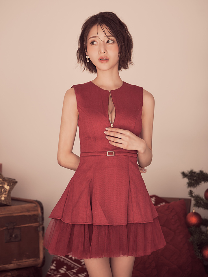 XS-Lサイズあり【DEA./ディア】ノースリーブ/ ベルトデザイン/ チュール/ フレア/ ミニドレス/ キャバドレス[OF08] [DE3444-R-S251209]