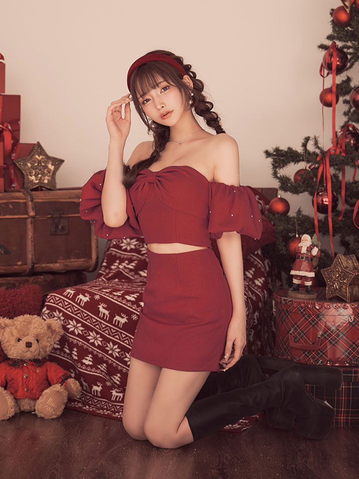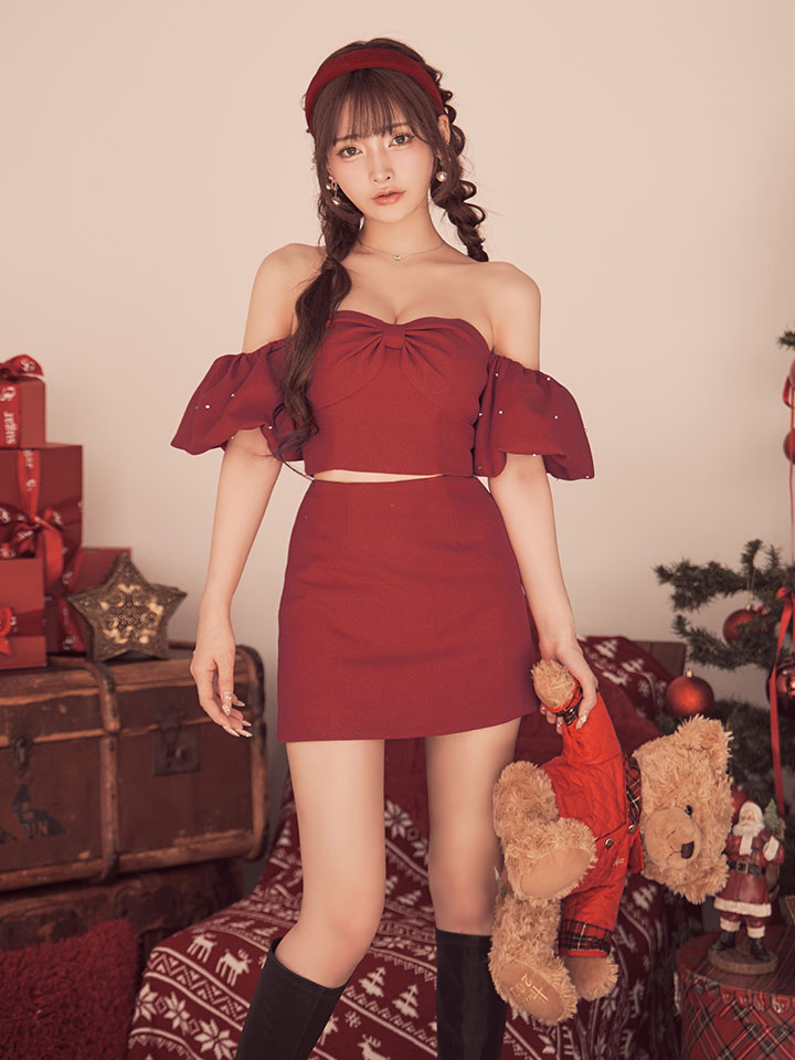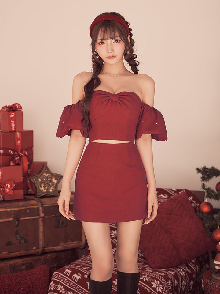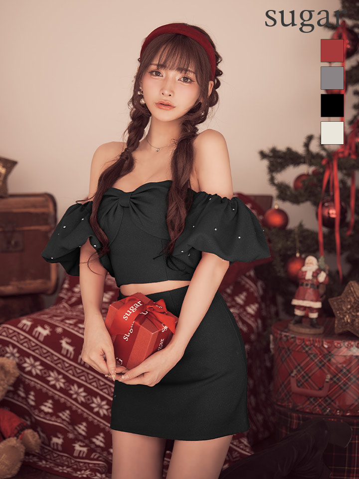 #キャバクラ #キャバ嬢 #キャバクラドレス #オフショル #パフスリーブ #谷間魅せ #リボン #セットアップ #ミニドレス