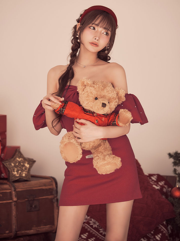 XSサイズあり【ROBE de FLEURS/ローブドフルール】オフショルダー/ ビックリボン/ セットアップ/ タイト/ ミニドレス/ キャバドレス[OF08]