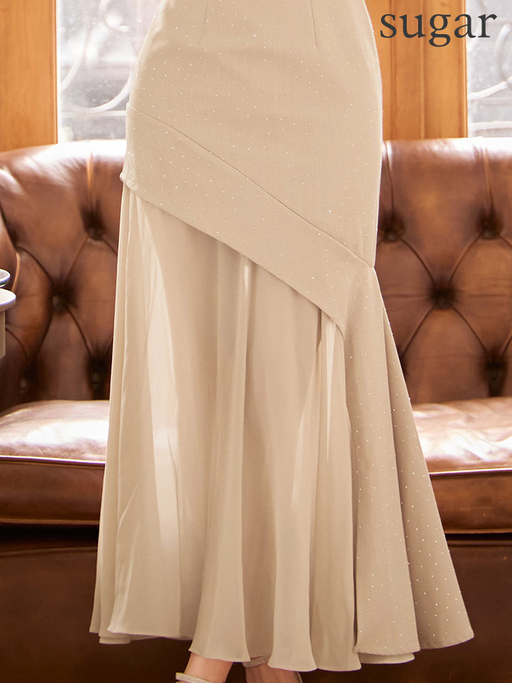 動くたびに表情を変える裾のシフォンが、上品で女性らしい一枚。