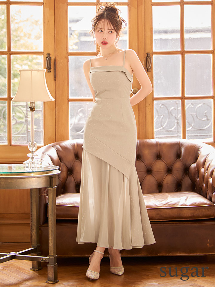 【ANGEL R/エンジェルアール】アシンメトリーデザイン/ シフォン/ ラメ/ タイト/ ロングドレス/ キャバドレス[OF2]
