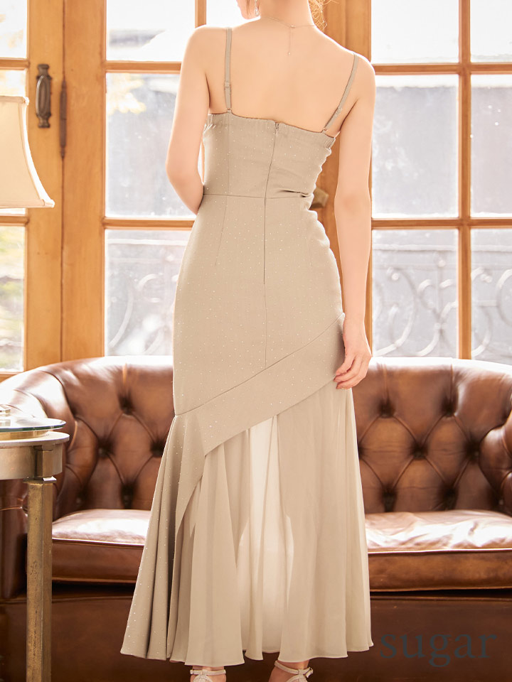 【ANGEL R/エンジェルアール】アシンメトリーデザイン/ シフォン/ ラメ/ タイト/ ロングドレス/ キャバドレス[OF2] [AR25872-GY-S251127]