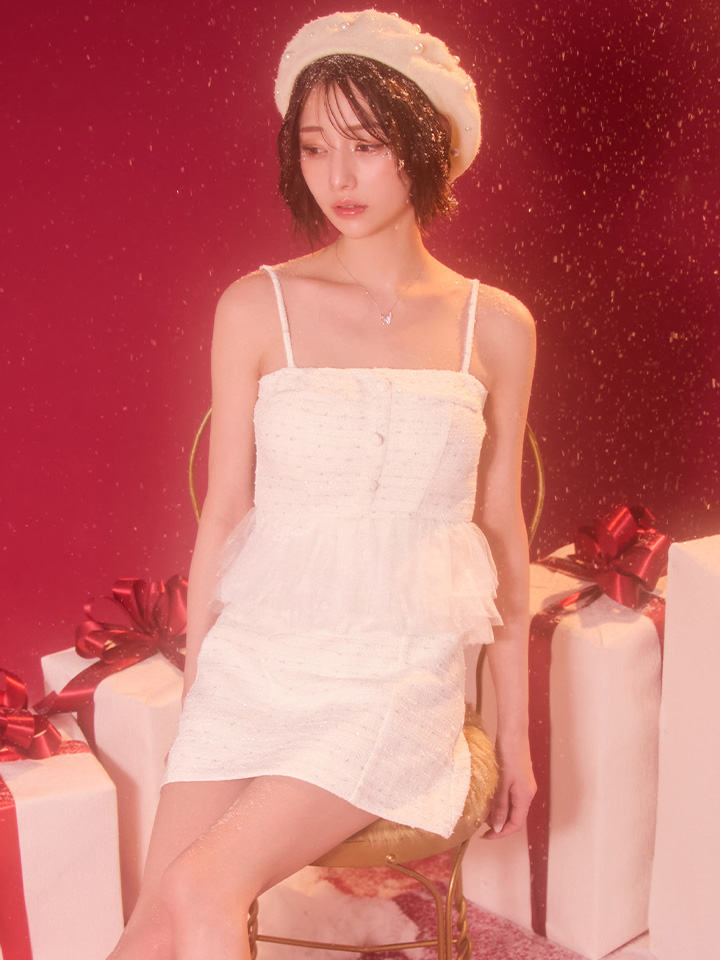 - > 【予約商品/12月中旬発送予定】XSサイズあり【ROBE de FLEURS/ローブドフルール】ベア/ ラメ/ ツイード/ チュール/ フリル/ セットアップ/ タイト/ ミニドレス/ キャバドレス[OF08]
