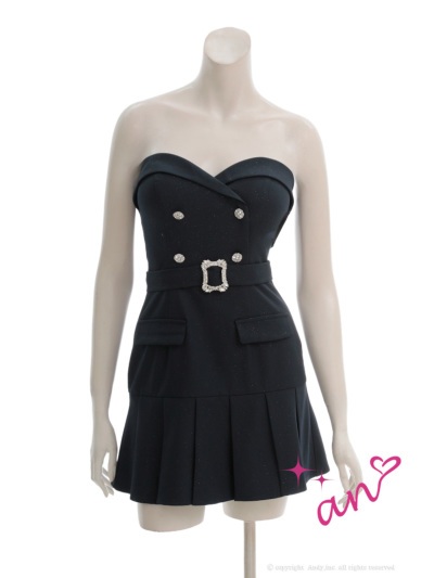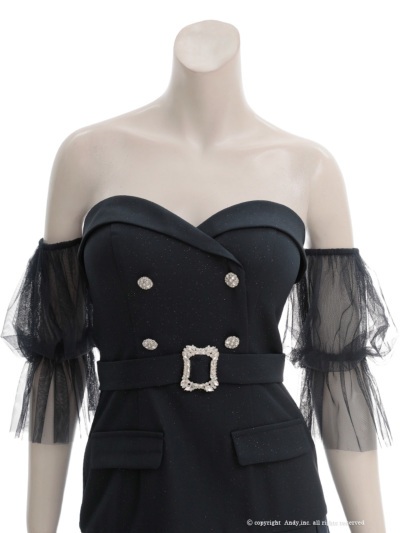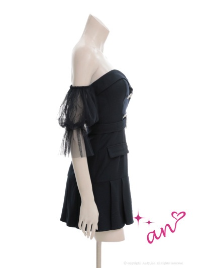 - > XSサイズあり【an /アン】チュールスリーブ付き/ 袖取り外し可能/ 2way/ ビジューボタン/ ベルト/ プリーツ/ フレア/ ベア/ ミニドレス/ キャバドレス[OF05]