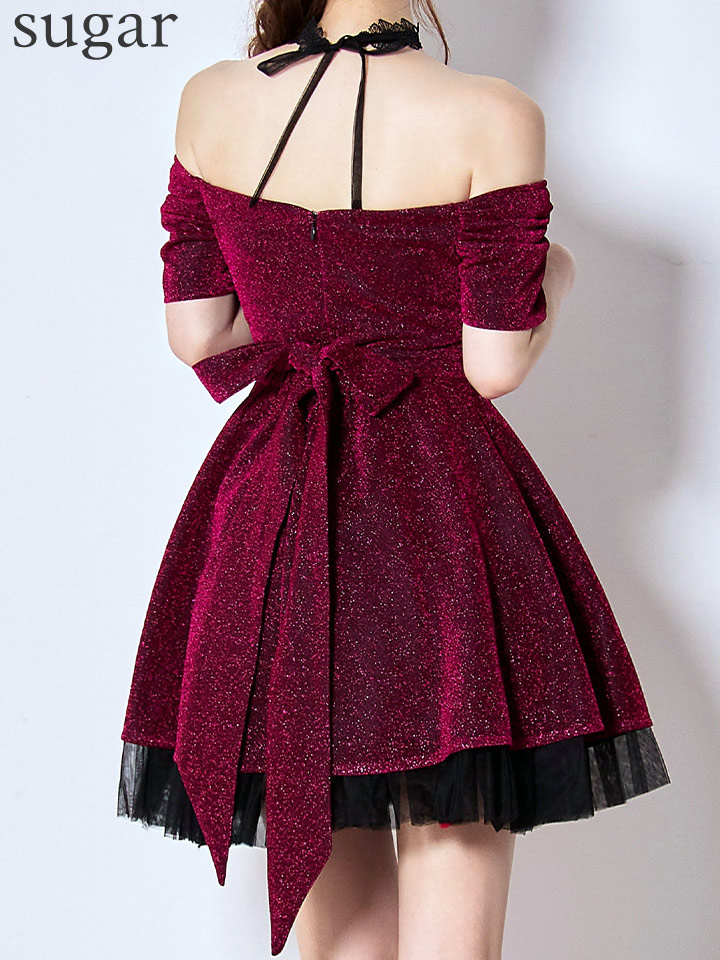 - > XS-Lサイズあり【Donia Quinn / ドニアクイーン】 ラメ/ オフショル/ ネックアクセサリー/ ストレッチ/ フレア/ ワンピース/ ミニドレス/ キャバドレス[OF05]