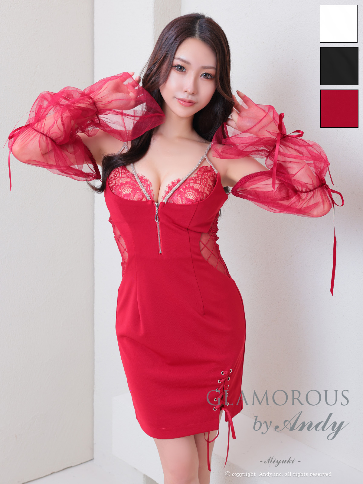 - > 【Andy GLAMOROUS/アンディグラマラス】2WAY/ ビジューチェーン/ パフスリーブ/ キャミ/ カットアウト/ フロントジッパー/ タイト/ ミニドレス/ キャバドレス[OF05]