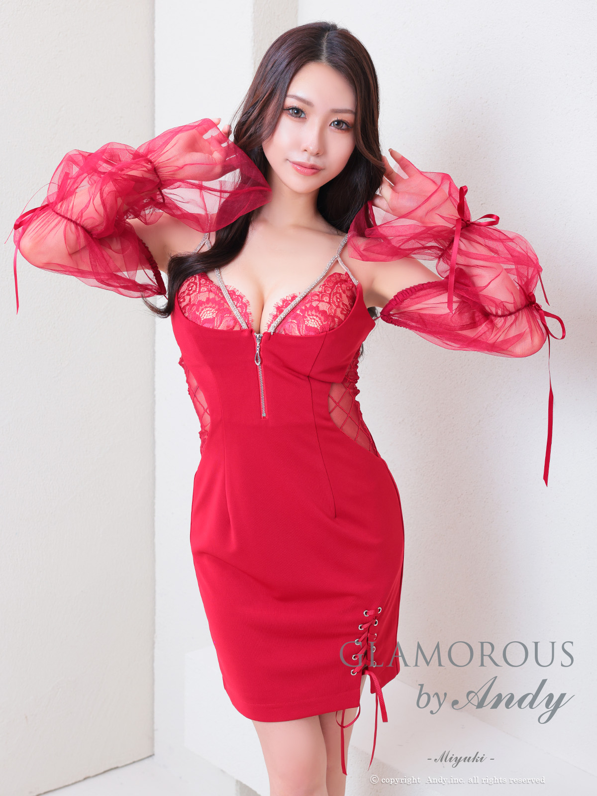 【Andy GLAMOROUS/アンディグラマラス】2WAY/ ビジューチェーン/ パフスリーブ/ キャミ/ カットアウト/ フロントジッパー/ タイト/ ミニドレス/ キャバドレス[OF05] [GMS-V875-R-2512]