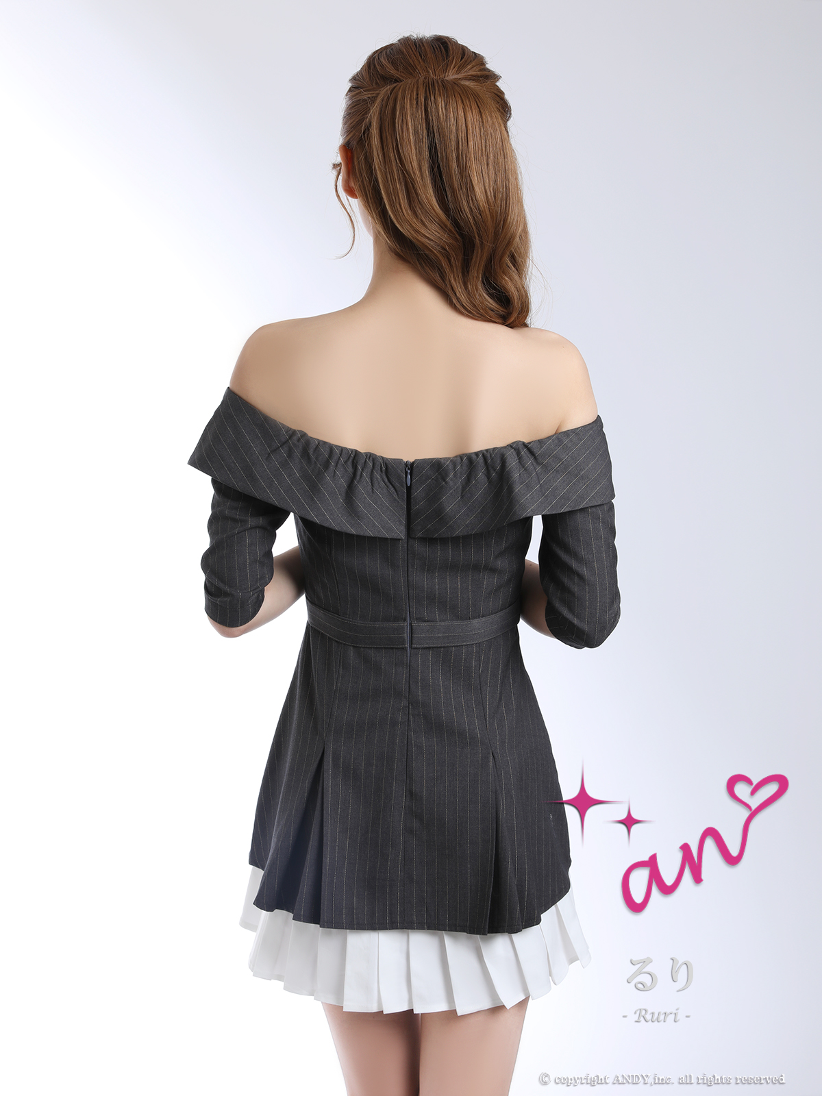 - > XSサイズあり【an /アン】ベルト/ オフショル/ ハーフスリーブ/ ストライプ/ ボタン/ フレア/ ワンピース/ ミニドレス/ キャバドレス[OF05]