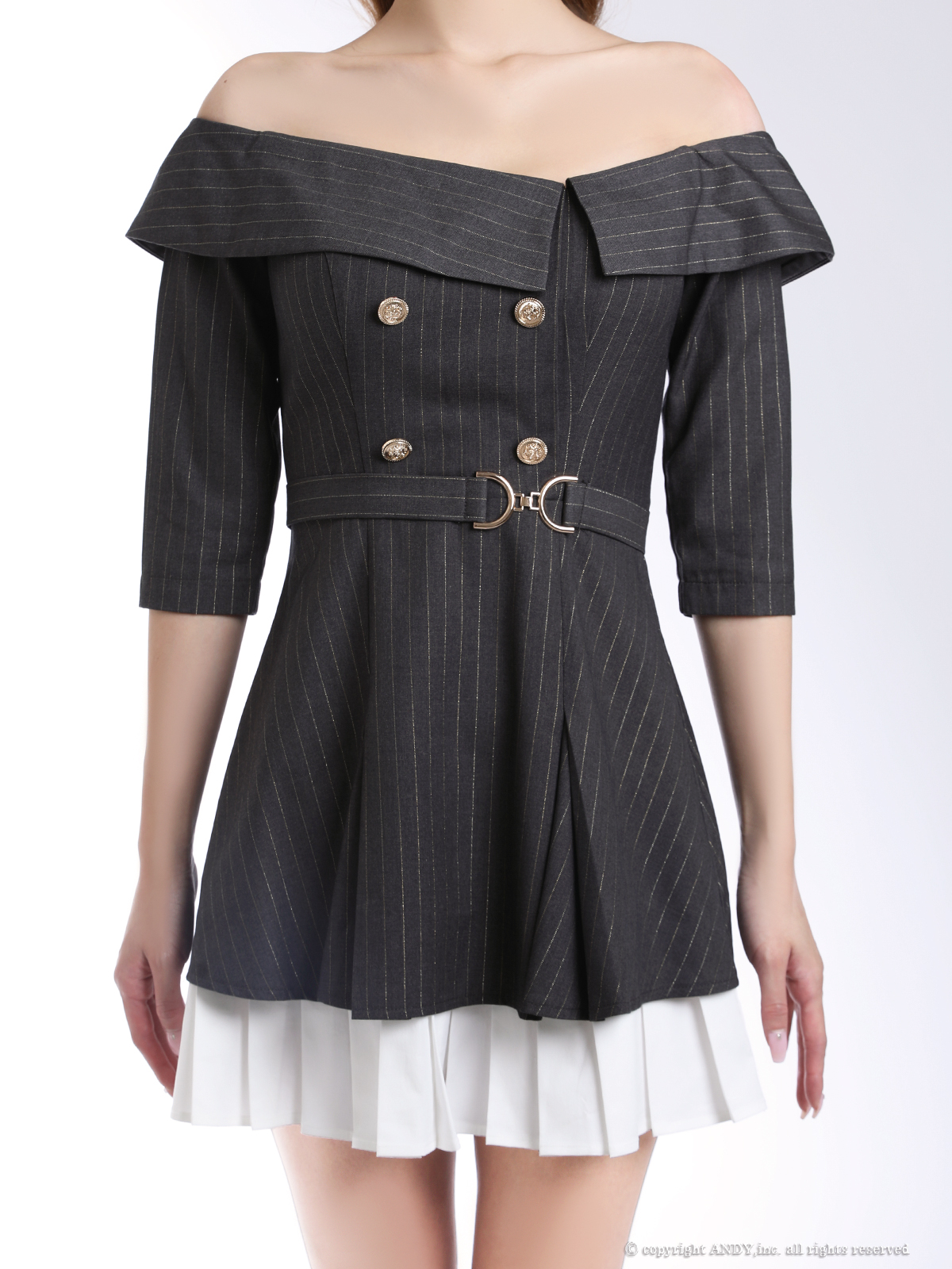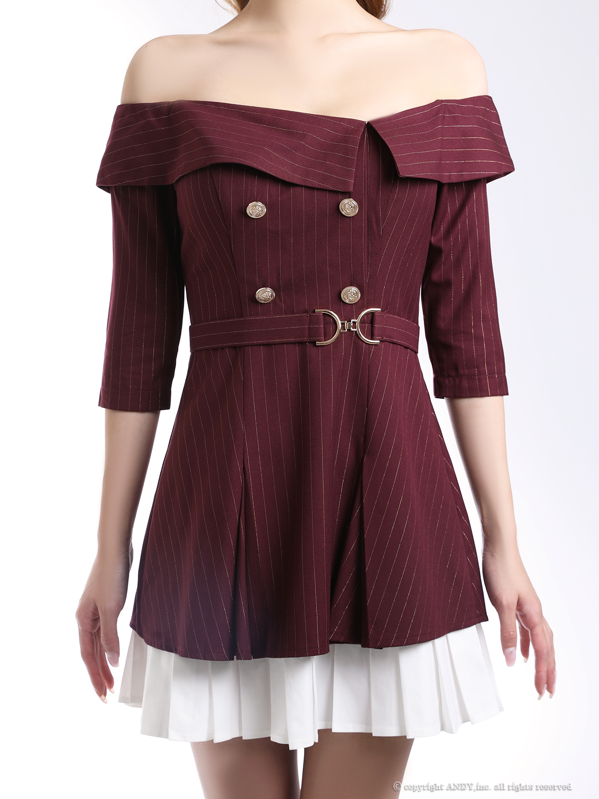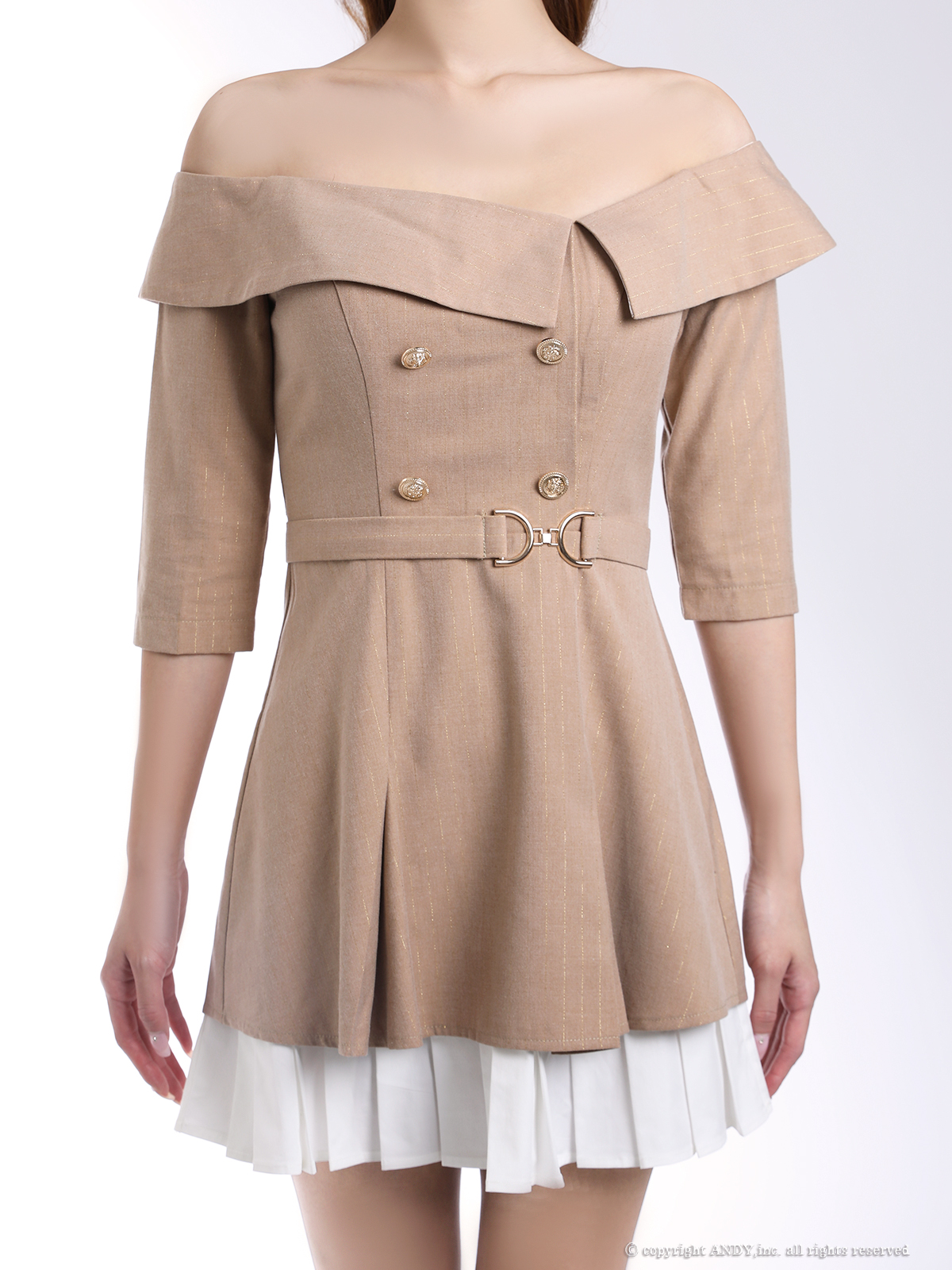 オフショルデザインxボタンxベルトの組み合わせも大人可愛い◎