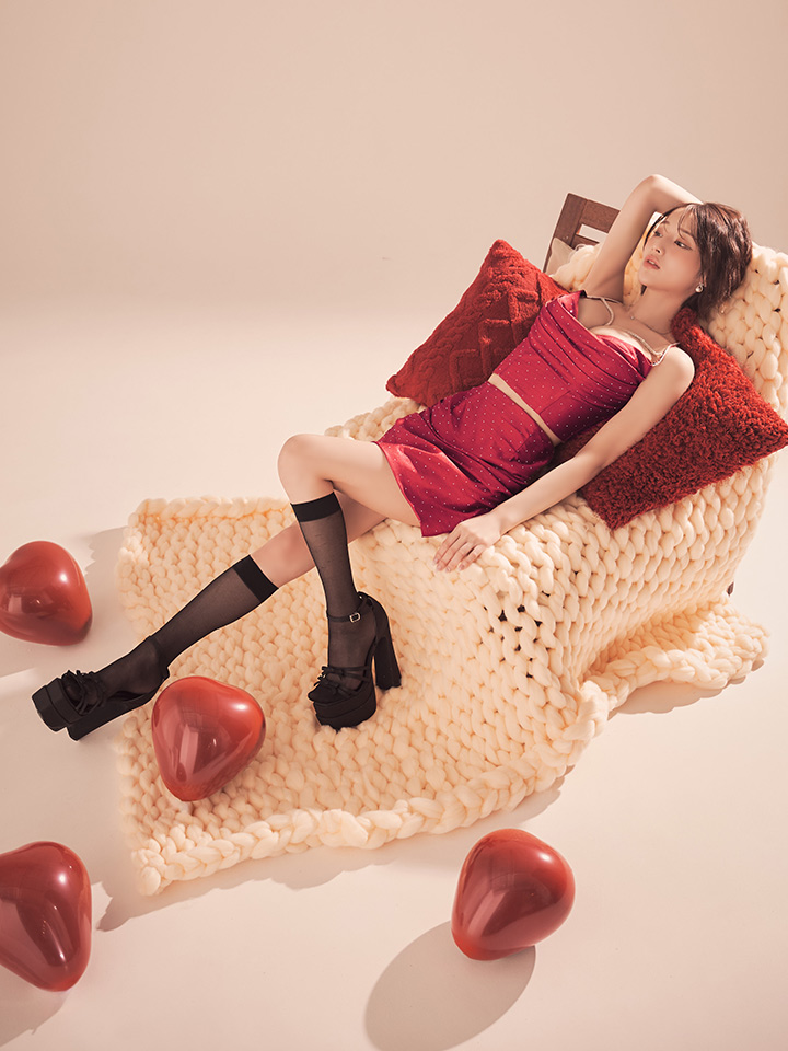 艶やかな光沢を放つストレッチサテン素材が、ボディラインに優しくフィット。