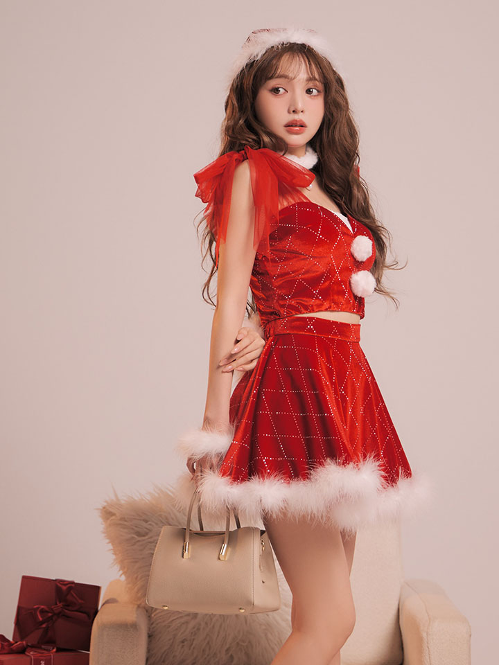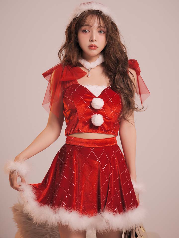 - > 【即日発送】【サンタ】チュールリボンアーガイル風サンタコスプレ【コスプレ6点セット】【XS-XLサイズ/3カラー】[HC03]
