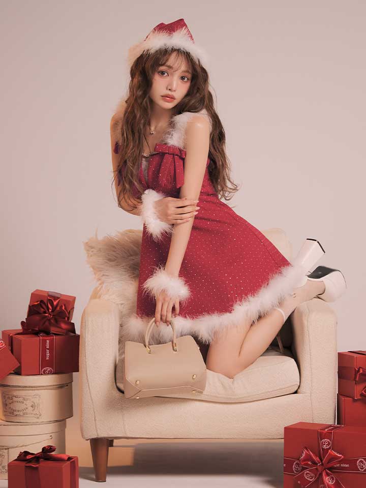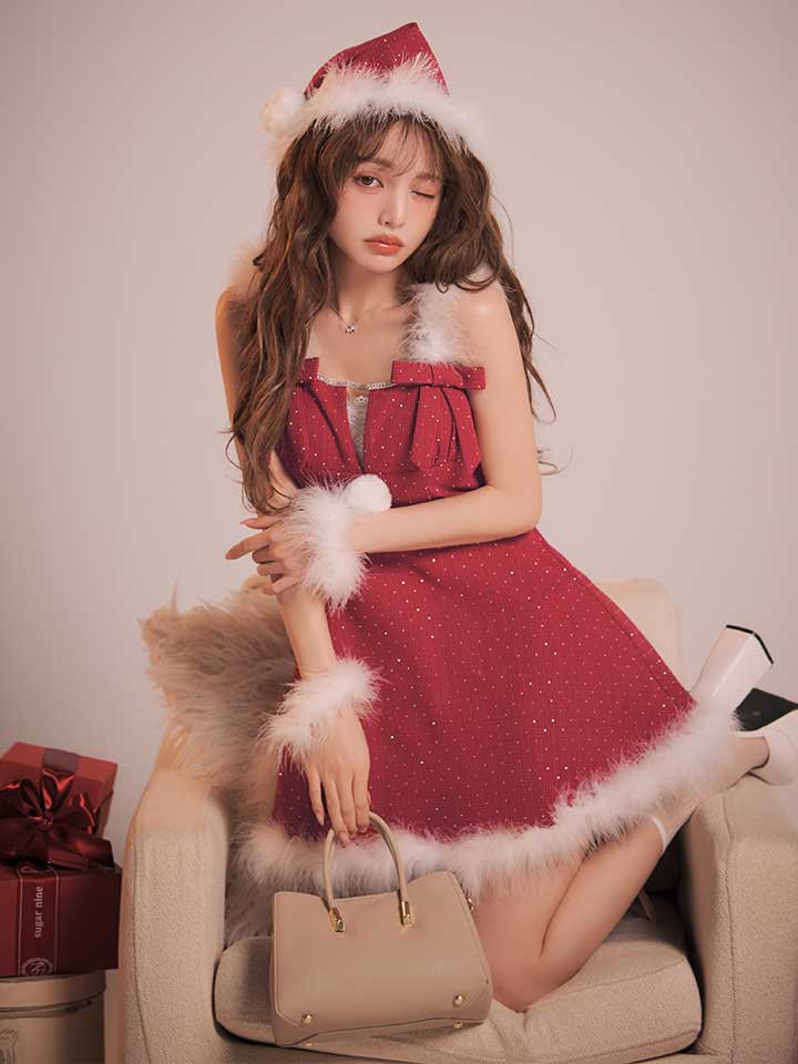 - > 【即日発送】【サンタ】リボンファーサンタコスプレ【コスプレ4点セット】【XS-XLサイズ/2カラー】[HC03]