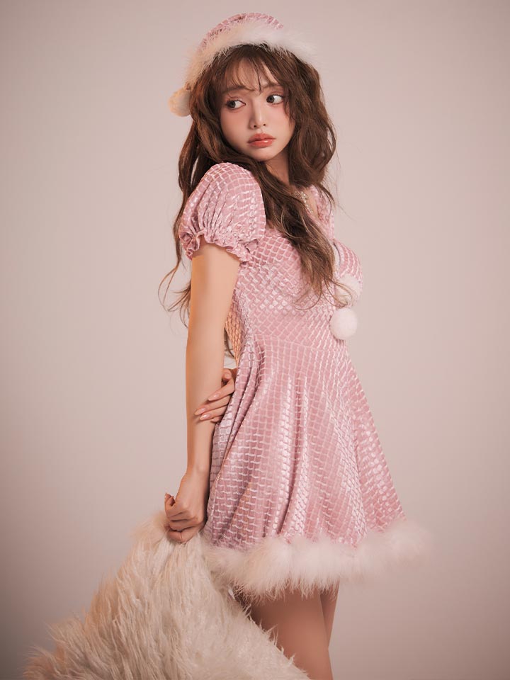 クロスネックがセクシーさを演出する、オフショルサンタコスプレ。