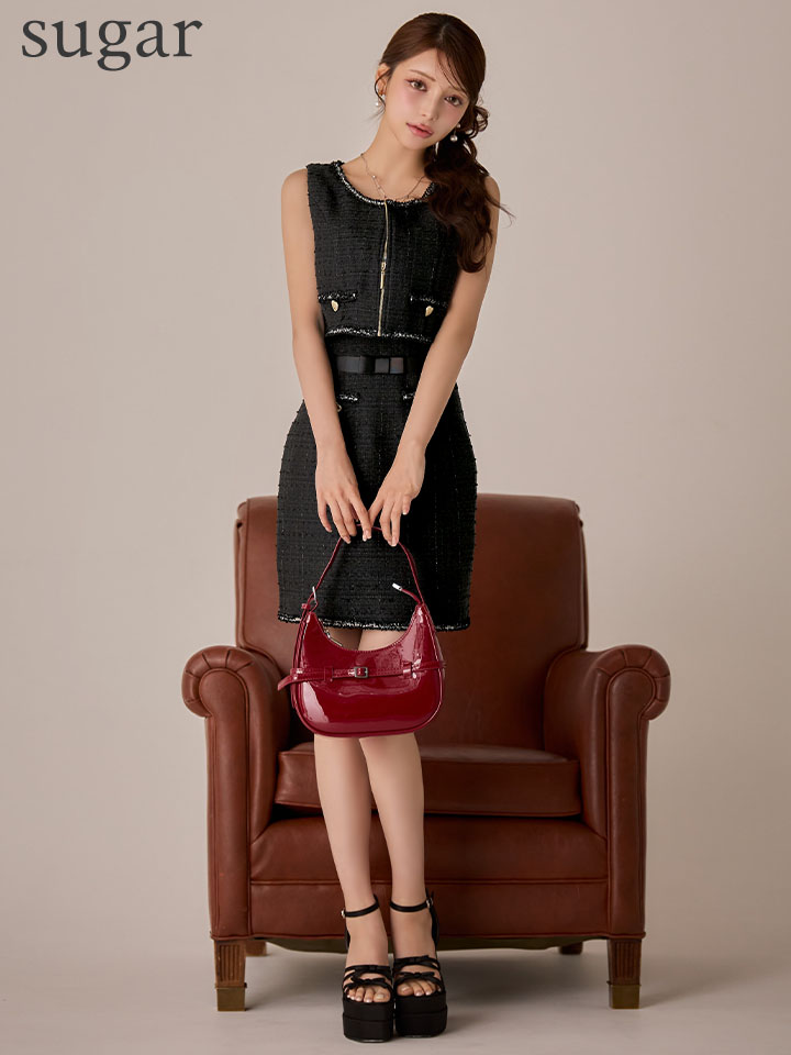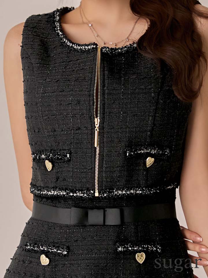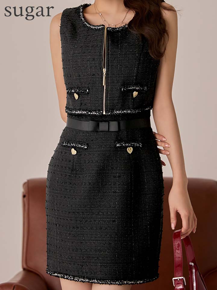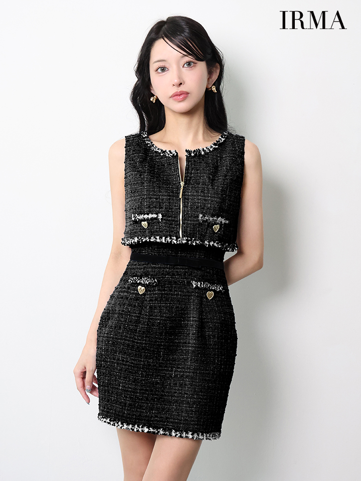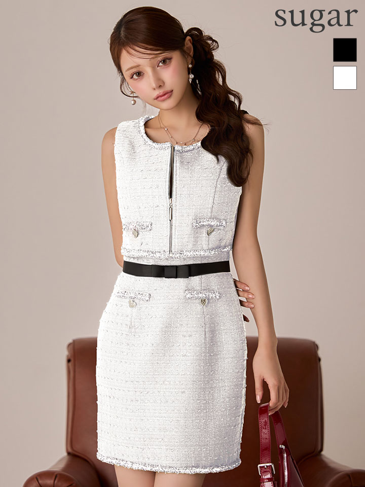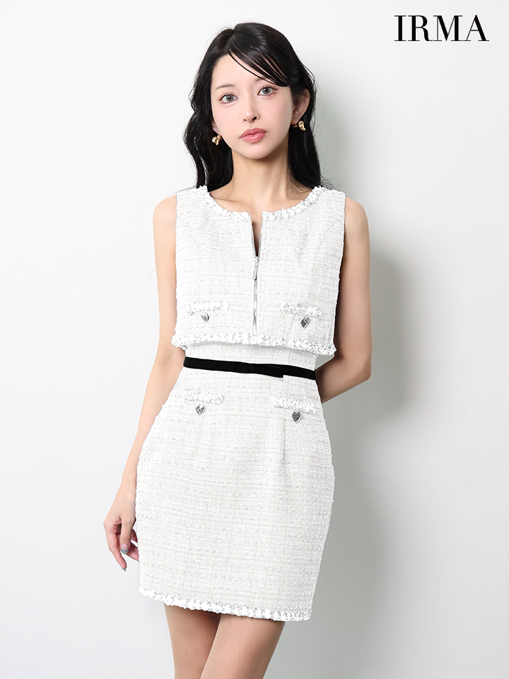 XSサイズあり【IRMA/イルマ】ベスト付き/ リボンベルト/ ツイード/ フリンジ/ ノースリーブ/ タイト/ ミニドレス/ キャバドレス[OF2A] [55106-IR-B-S251208]