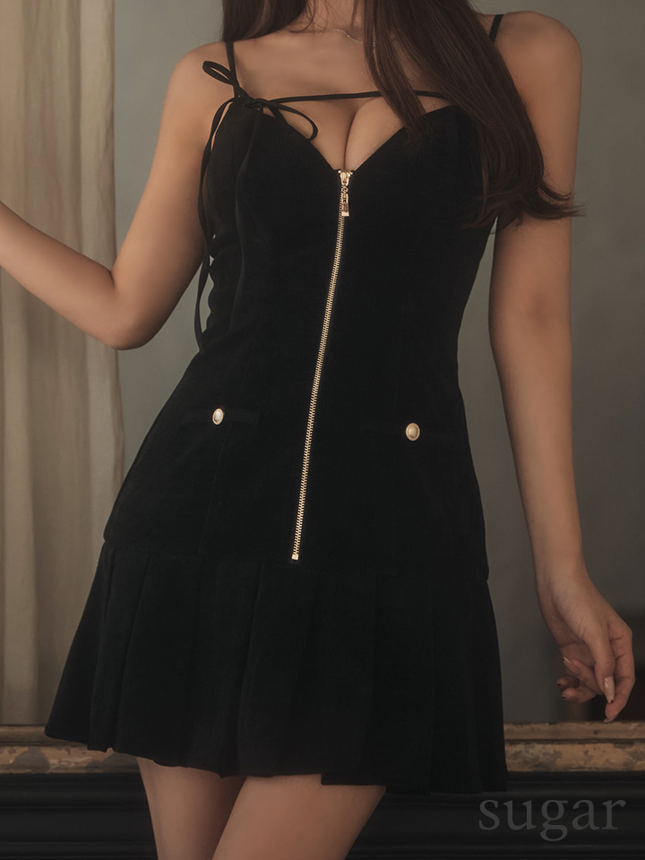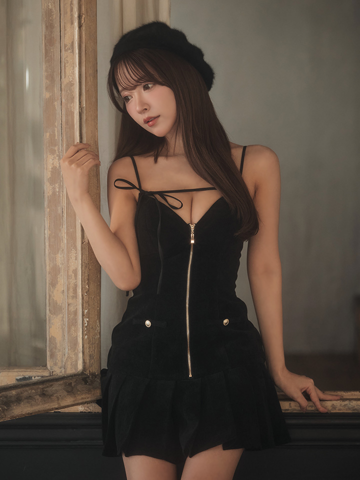 #キャバクラ #キャバ嬢 #キャバクラドレス #ミニドレス #コーデュロイ #リボン #プリーツ #ツイル