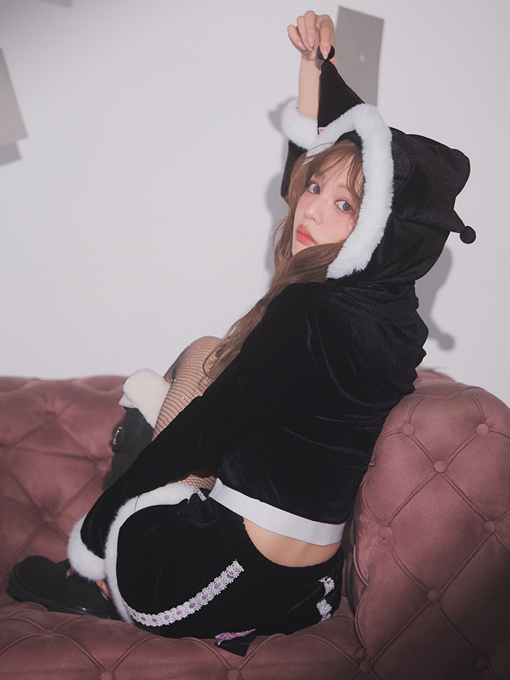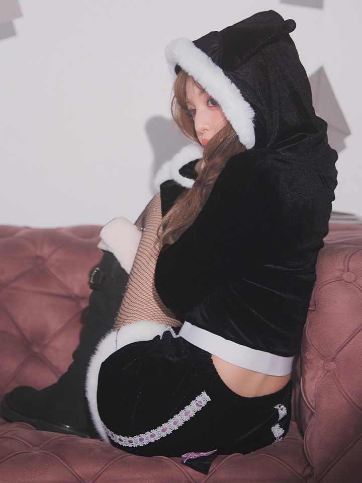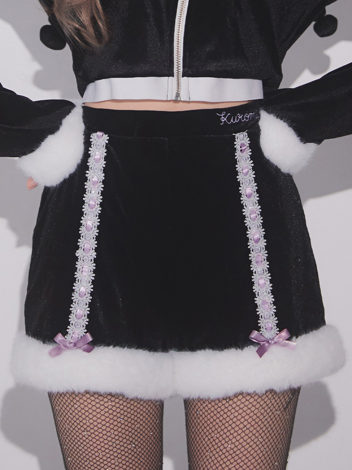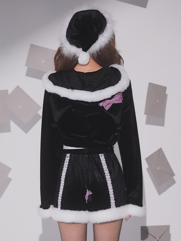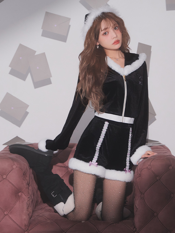 ブラック 黒色 セットアップ ショートパンツ ベロア リボン