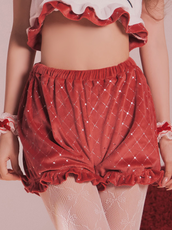レッド 赤 セットアップ ビジュー ショートパンツ