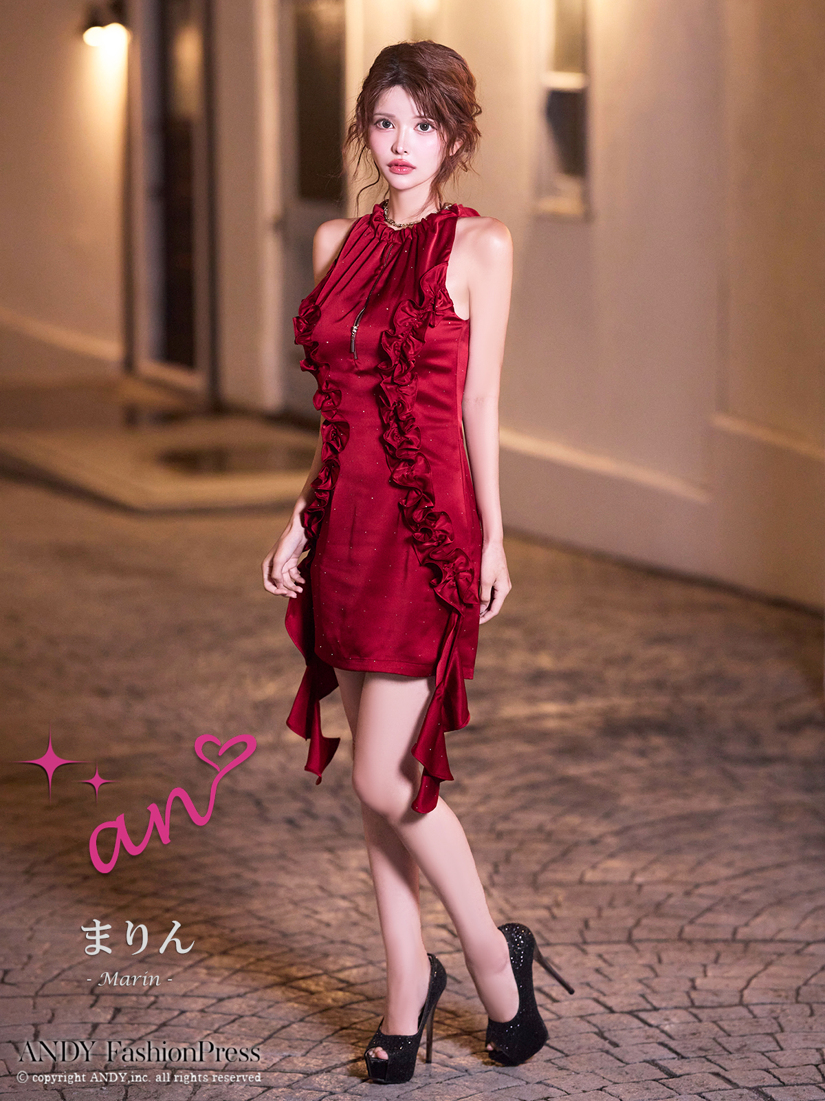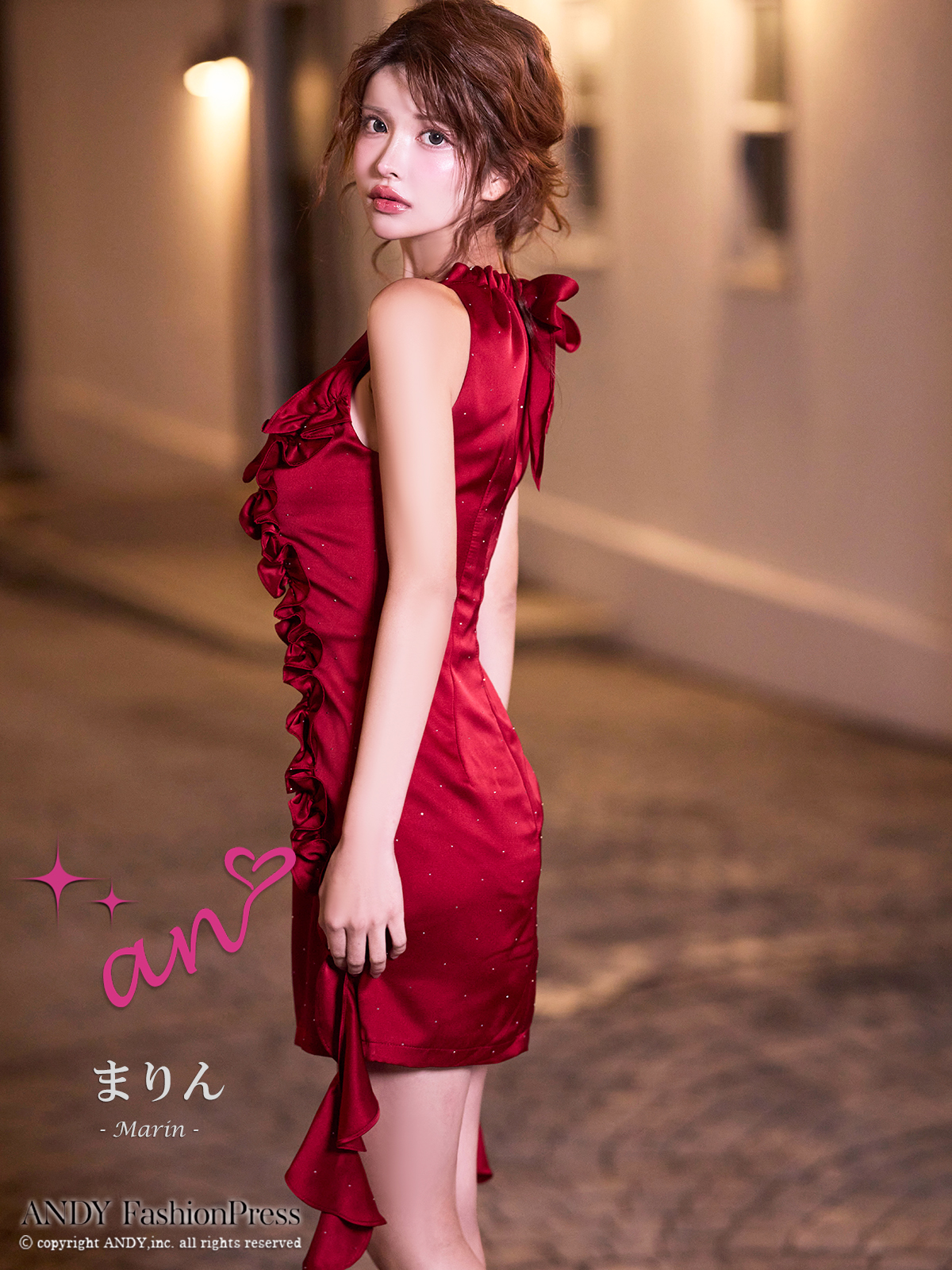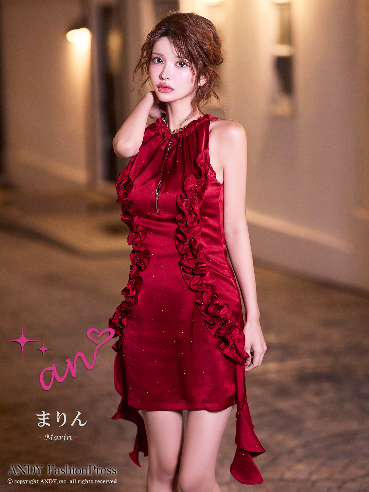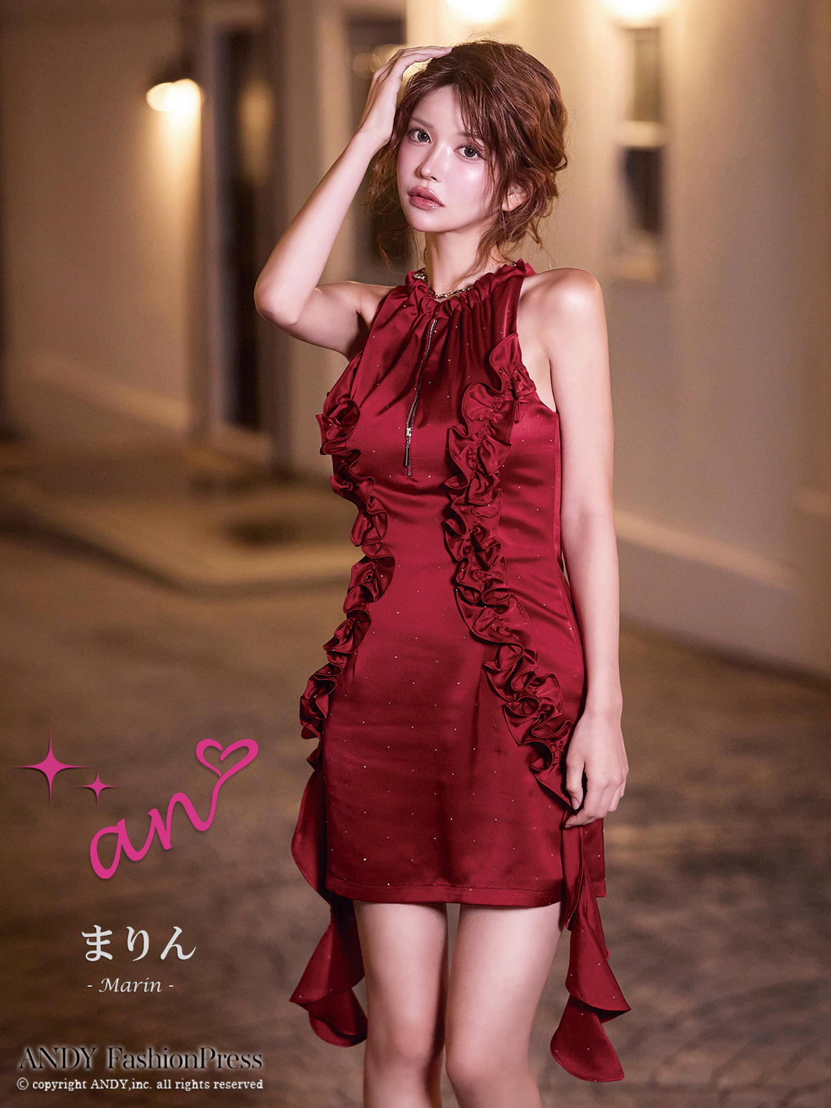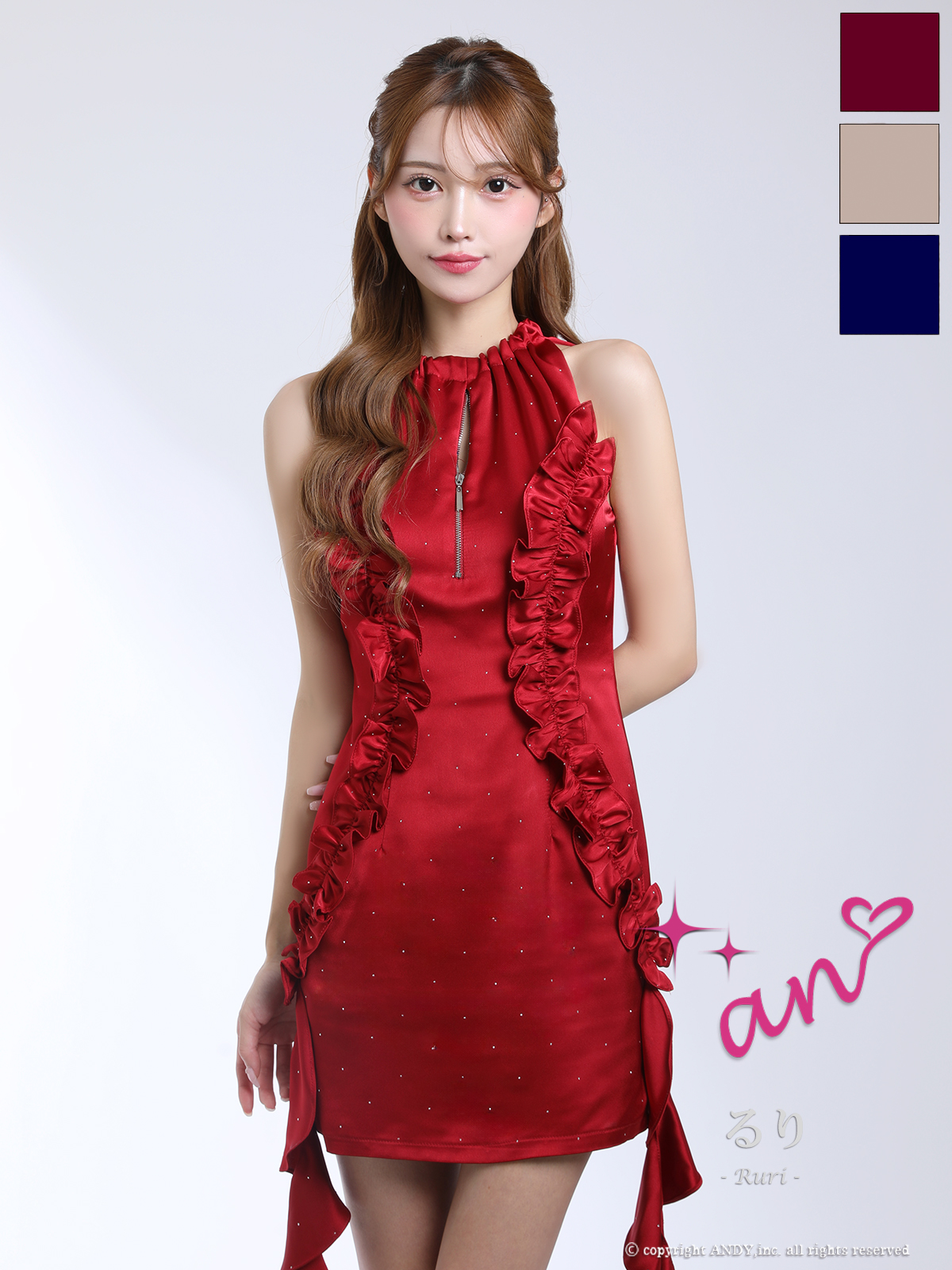 - > XSサイズあり【an /アン】ラインストーン/ アメスリ/ バストジップ/ フリルリボン/ タイト/ ミニドレス/ キャバドレス[OF05]