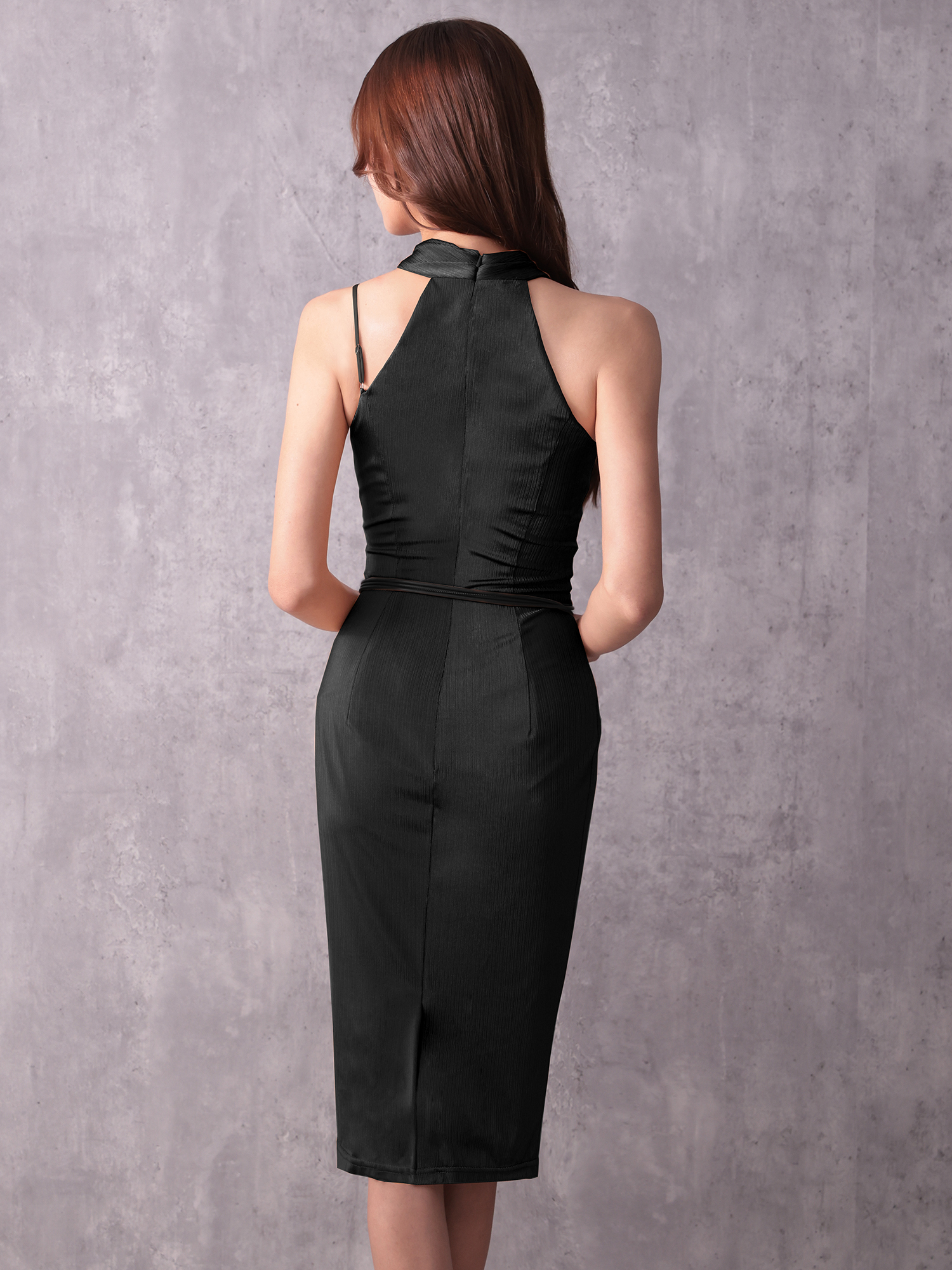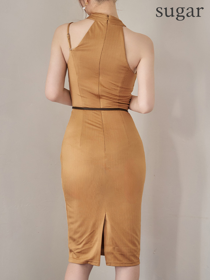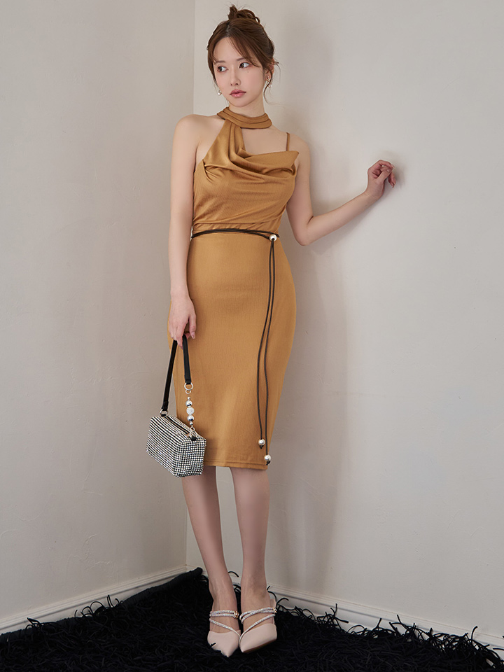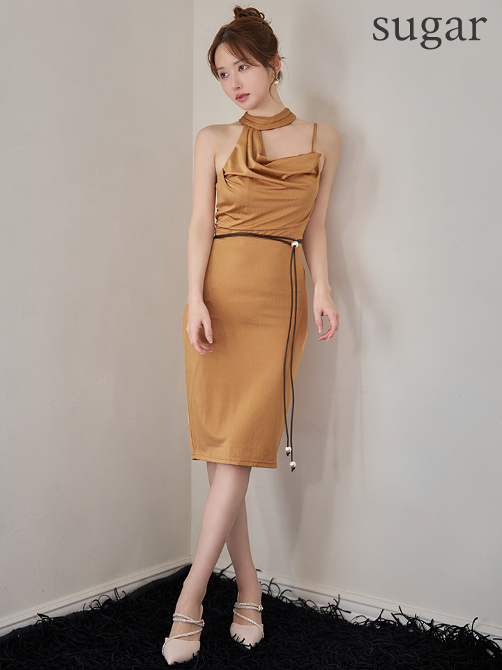 - > 【12月上旬-12月中旬発送予定】XSサイズあり【Veautt/ヴュート】【OF05】アシンメトリーネック/ ドレープ/ ベルト/ タイト/ ミディアムドレス/ キャバドレス