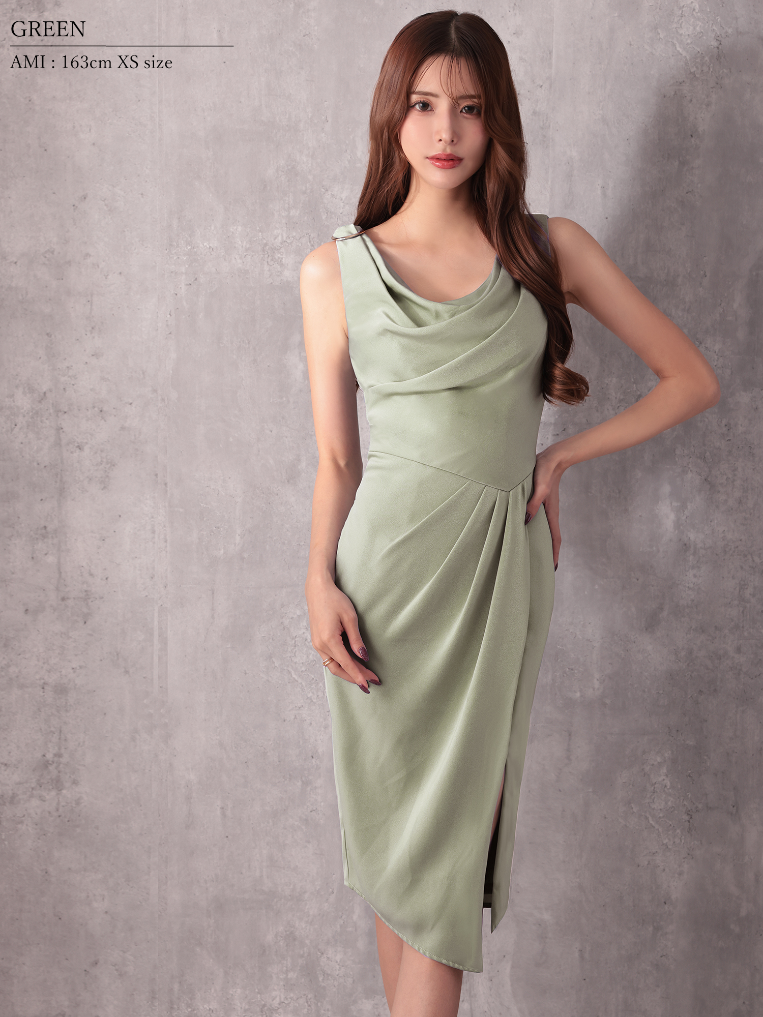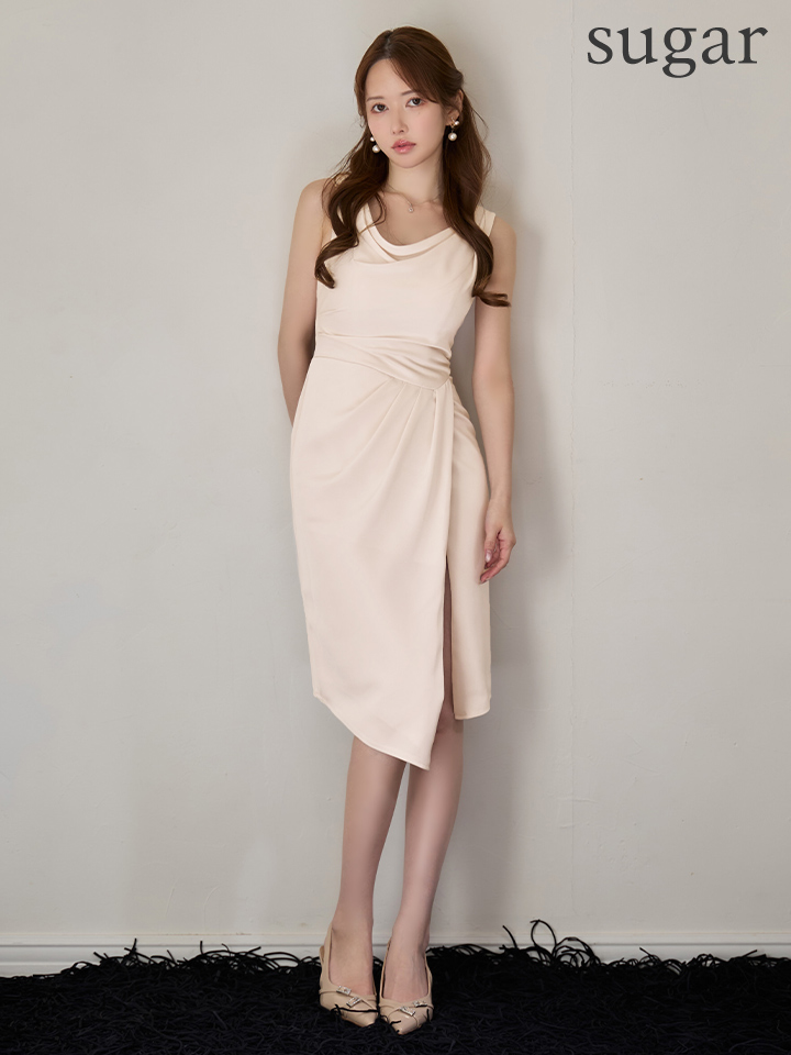- > 【予約商品/12月上旬-12月中旬発送予定】XSサイズあり【Veautt/ヴュート】【OF05】ドレープ/ ショルダーパーツ/ タック/ タイト/ ミディアムドレス/ キャバドレス