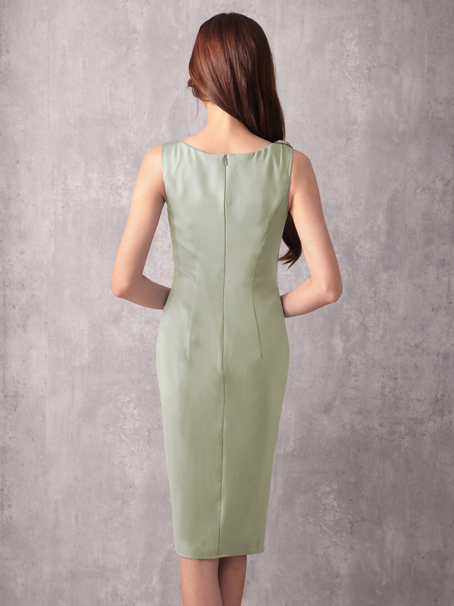 サイドに流れるタックとスリットが、洗練された縦ラインを強調します。