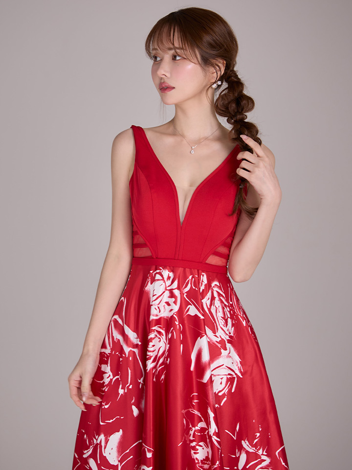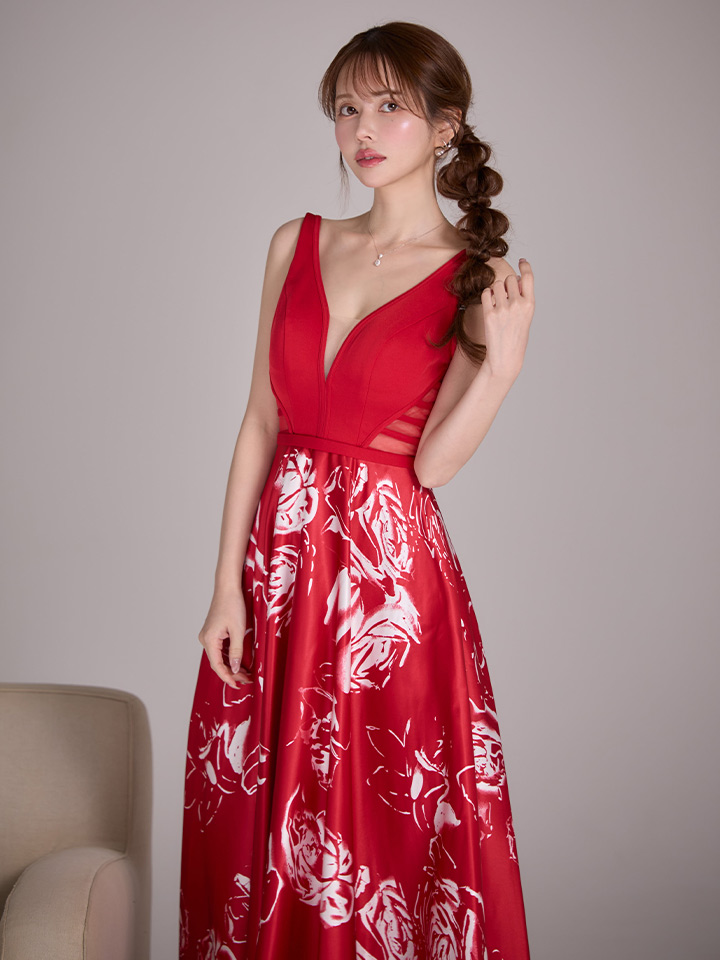 大輪の薔薇のプリント柄が華やかでエレガント◎