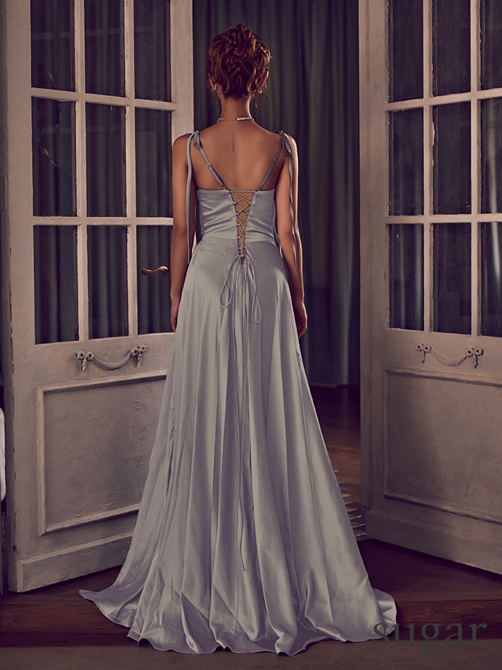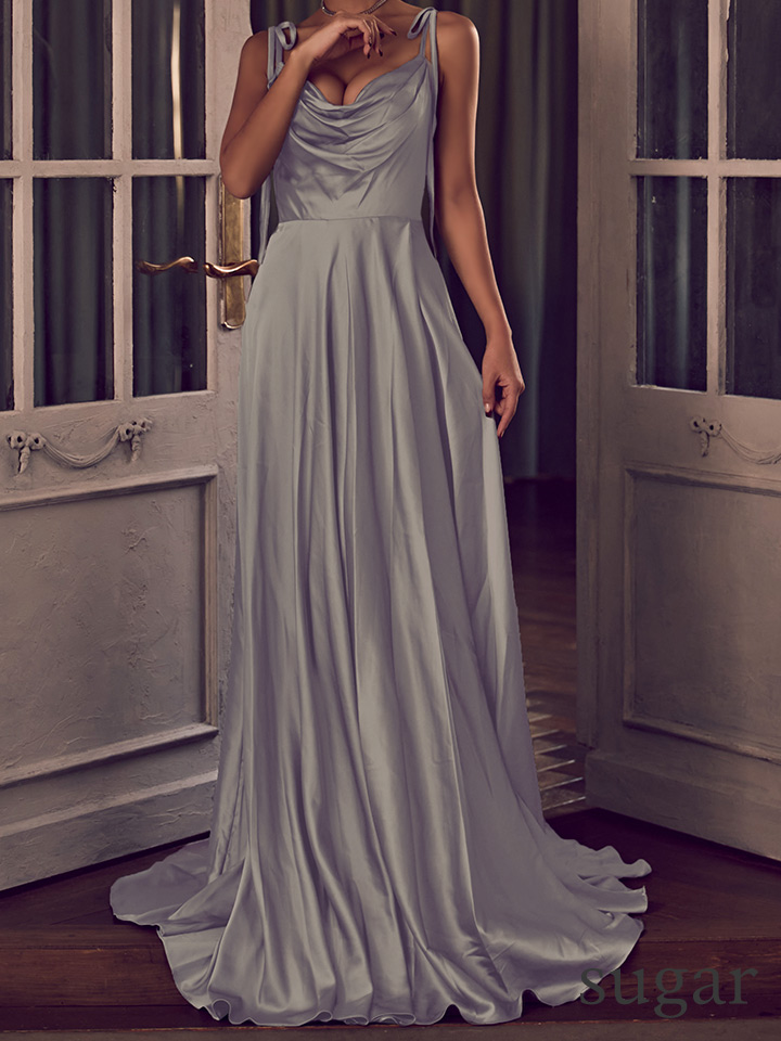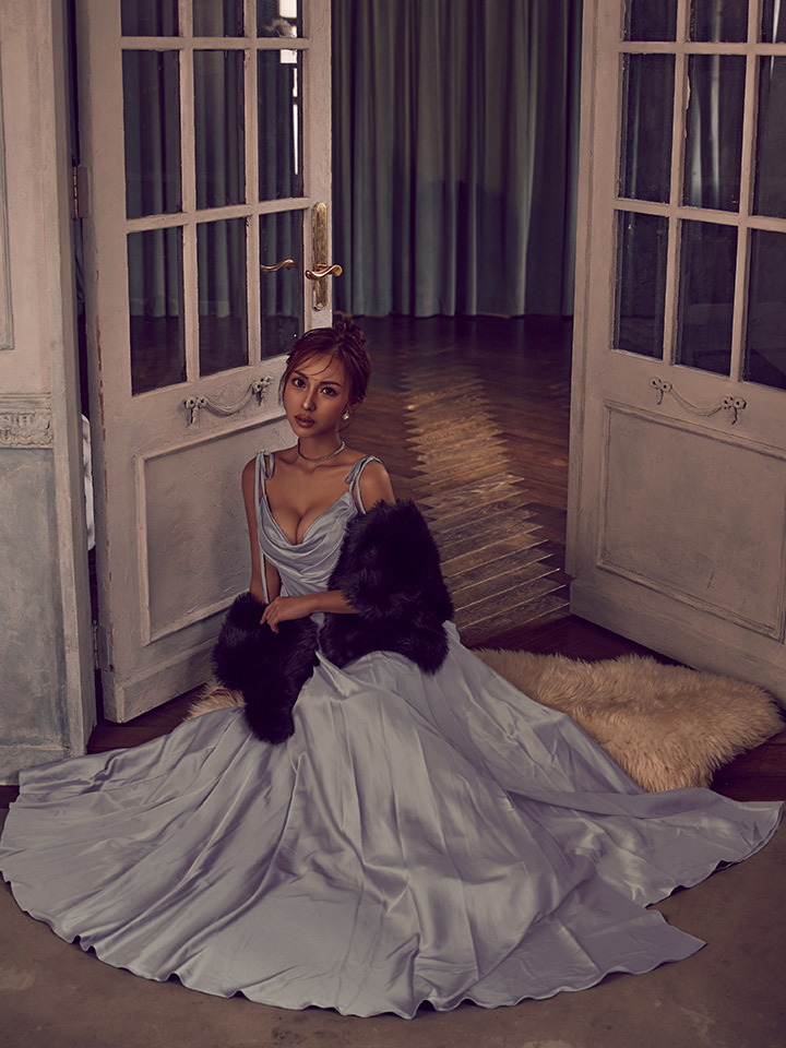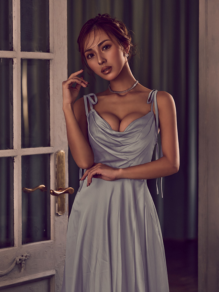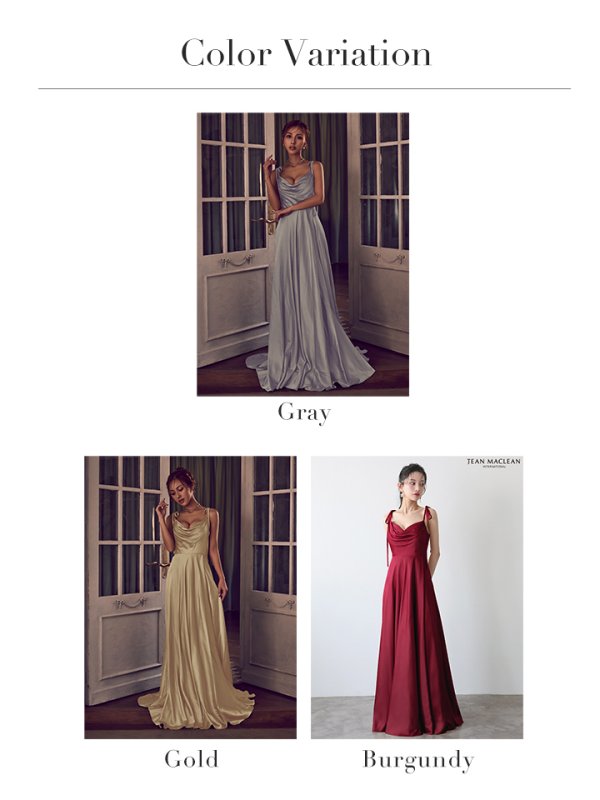 【JEAN MACLEAN/ジャンマクレーン】サテン/ ショルダーリボン/ キャミソール/ バストドレープ/ Aライン/ フレア/ ロングドレス/ キャバドレスlong[OF2A] [51975-JM-GY-S251211]