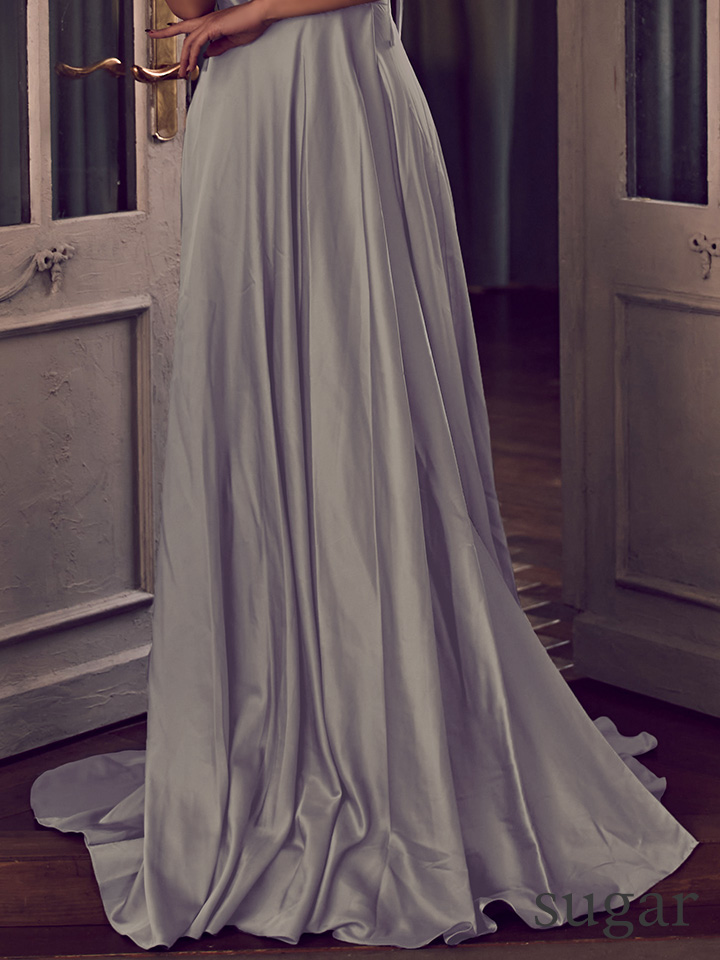 艶感のあるサテン生地がエレガントなフレアロングドレス♡