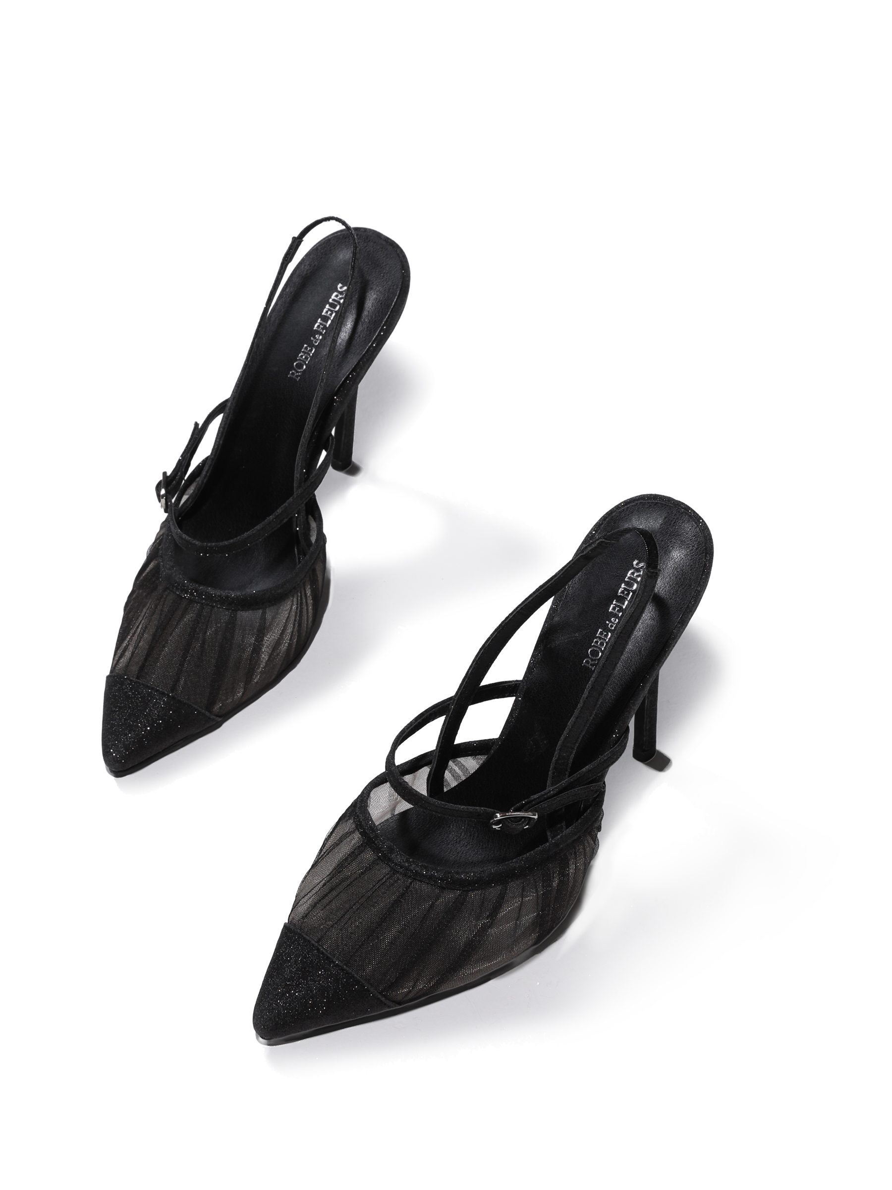 【ROBE de FLEURS/ローブドフルール】シアー/ メッシュ/ ポインテッドトゥ/ ストラップ/ パンプス[OF02C]