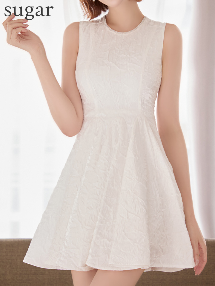XS-Lサイズあり【ERUKEI エルケイ】ネックビジュー/ シンプル/ ノースリーブ/ フレア/ Aライン/ ワンピース/ ミニドレス/ キャバドレス[OF2] [LKE25195-W-S2512]