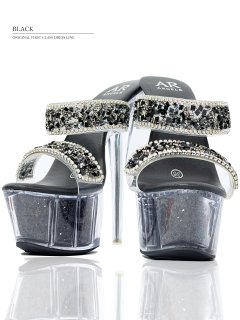 【ANGEL R/エンジェルアール】15cmヒール/ ビジュー/ ハートチャーム/ ラインストーン/ ストラップ/ チャンキーヒール/ ハイヒール /サンダル[OF02] [SH039-LGY-2512]