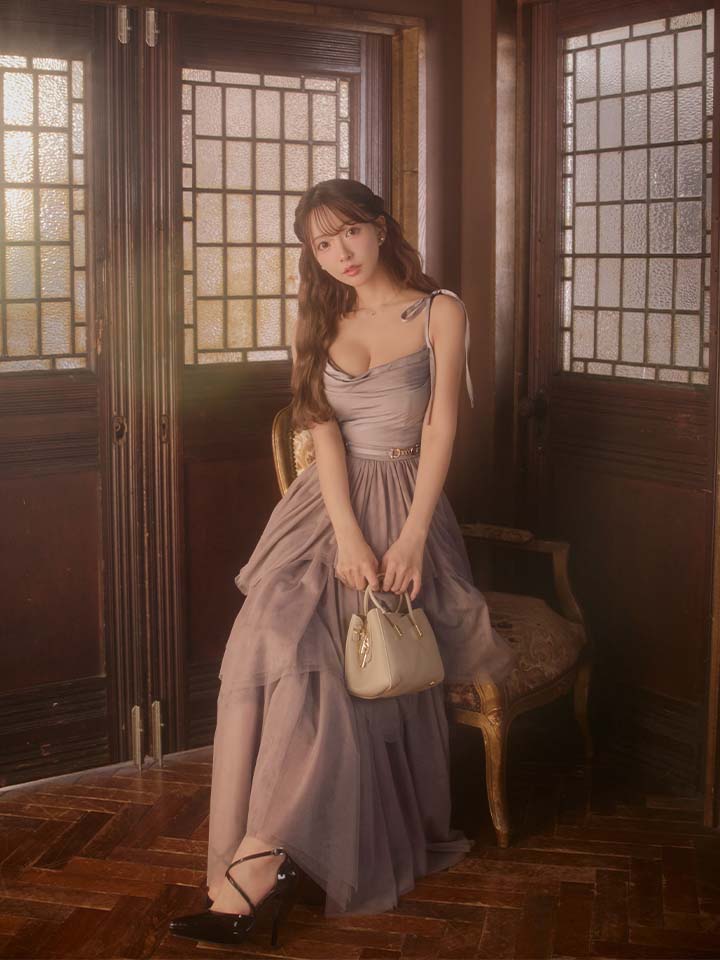 Lサイズあり【DEA./ディア】luxe tulle long dress/ リュクス/ チュール/ ロングドレス/ キャバドレス long[OF08]