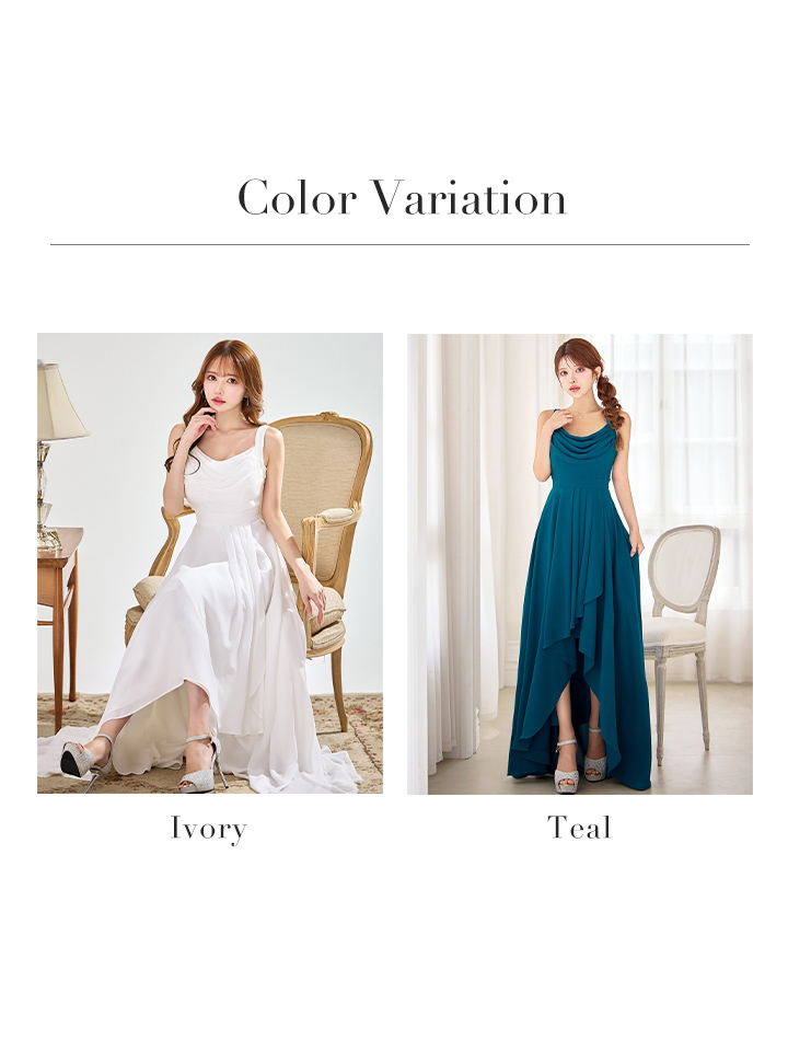 ゆったりとしたバストドレープが大人のエレガンス感じさせるフレアロングドレス♡