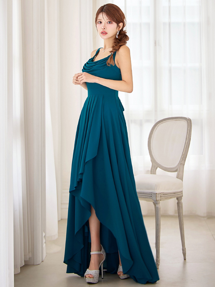 Lサイズあり【CLEO CLOE/ クレオ クロエ】 オケージョンドレス/ パーティードレス/ ステージドレス/ イベントドレス/ バストドレープ/ ノースリーブ/ 変形ヘムライン/ フレア/ ロングドレス long[OF05] [L60229L-Teal-S2512]