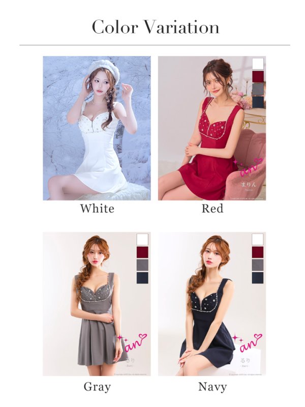 - > XSサイズあり【an /アン】ビジュー/ バストジップ/ ノースリーブ/ バックオープン/ リボン/ ミニドレス/ キャバドレス[OF05]