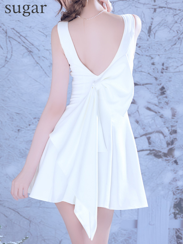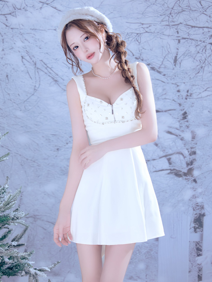 XSサイズあり【an /アン】ビジュー/ バストジップ/ ノースリーブ/ バックオープン/ リボン/ ミニドレス/ キャバドレス[OF05] [AOC3969-W-S251213]