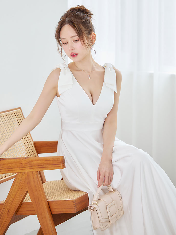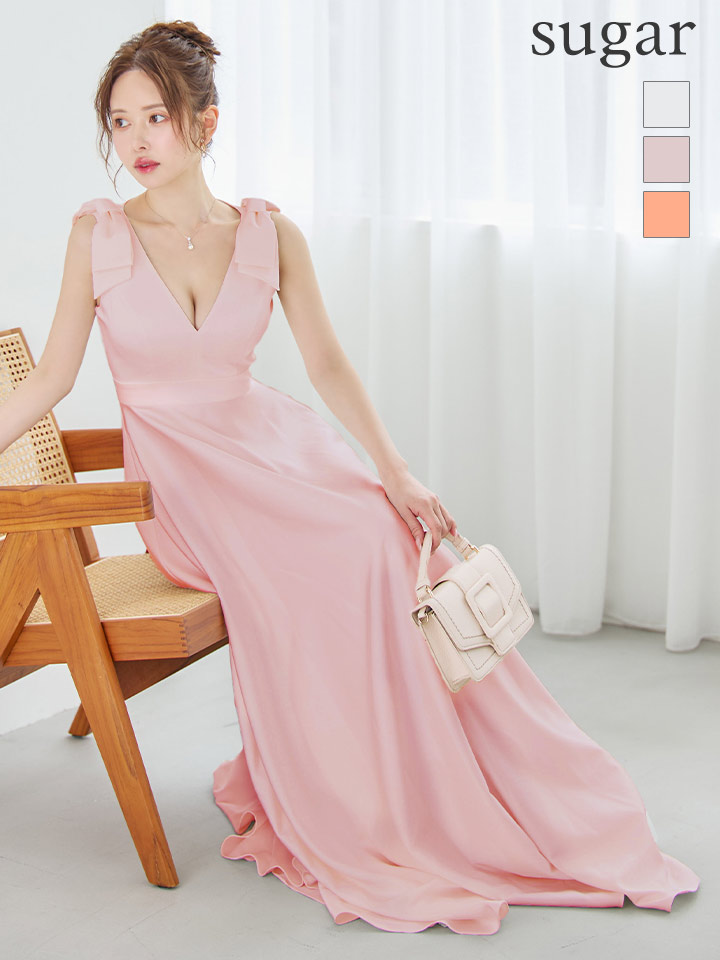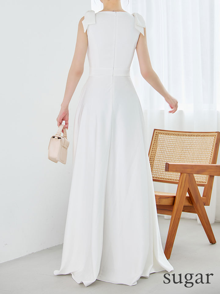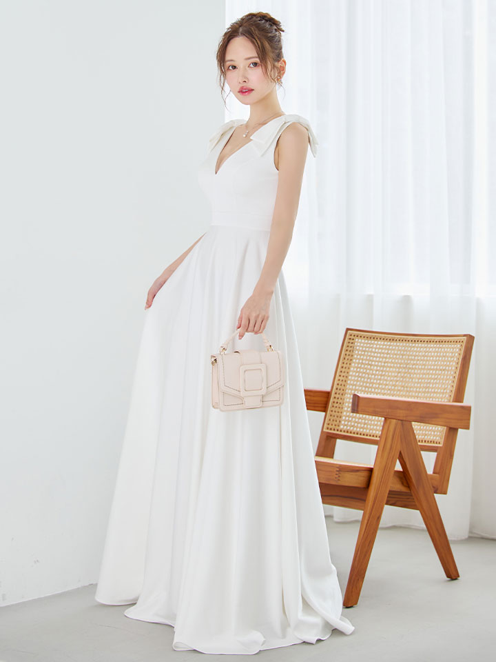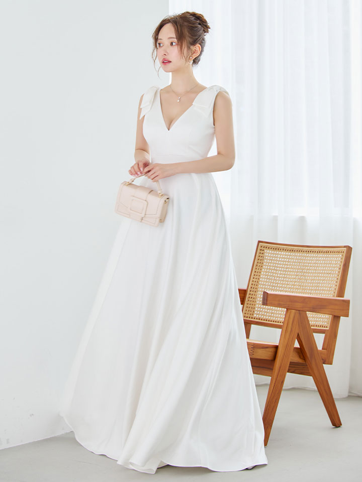 ショルダーリボンが大人可愛いAラインロングドレス♡