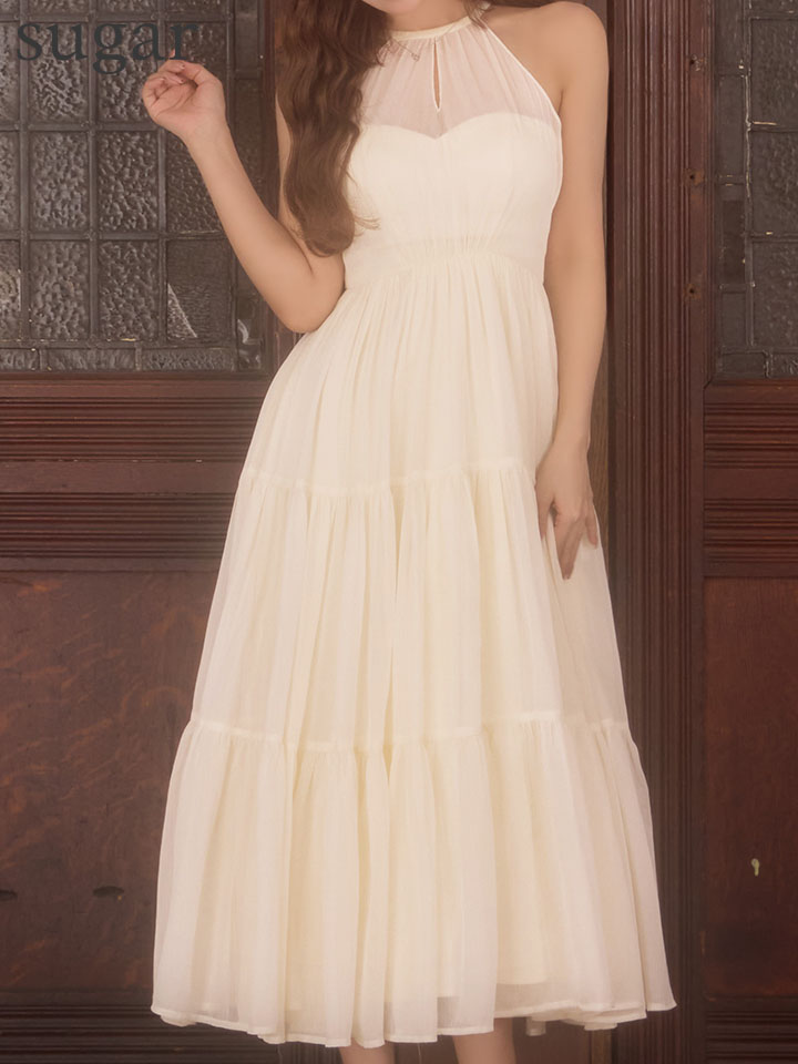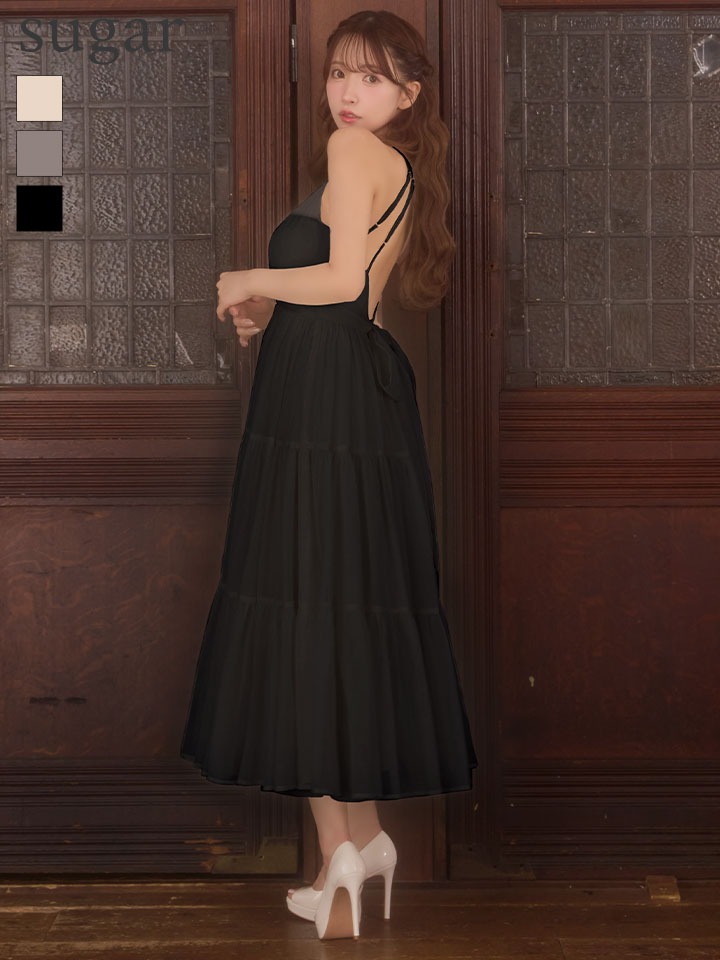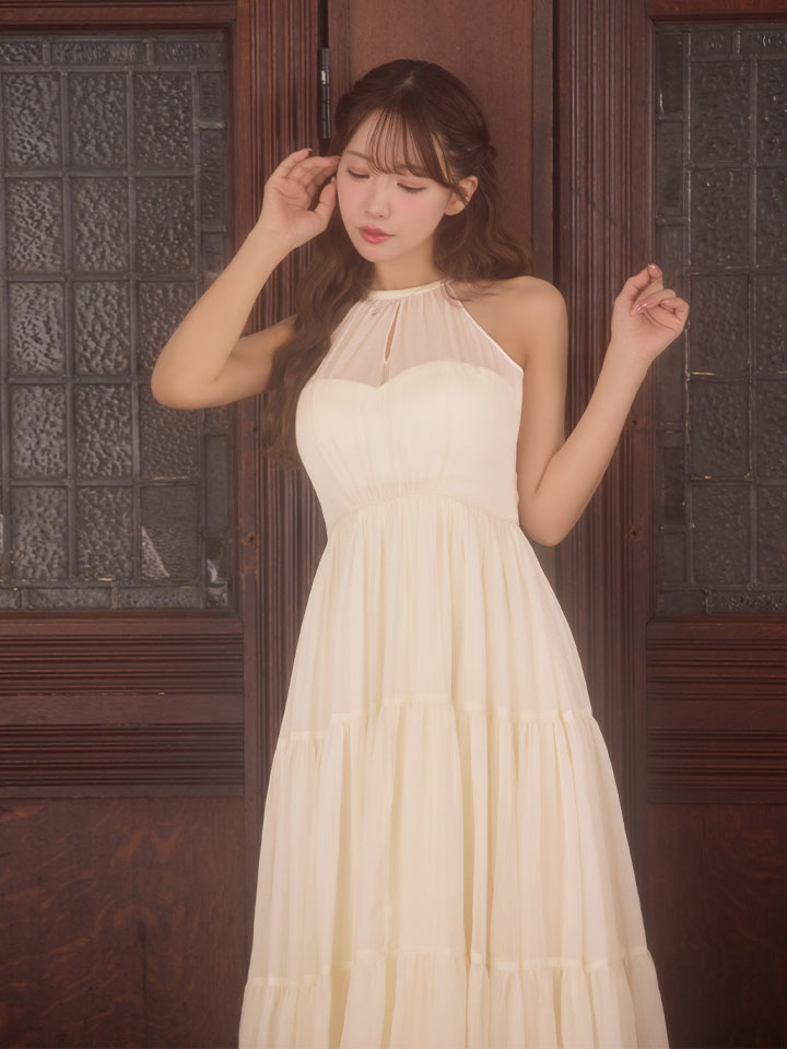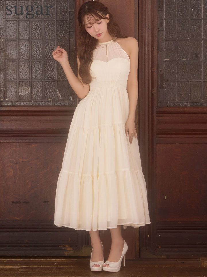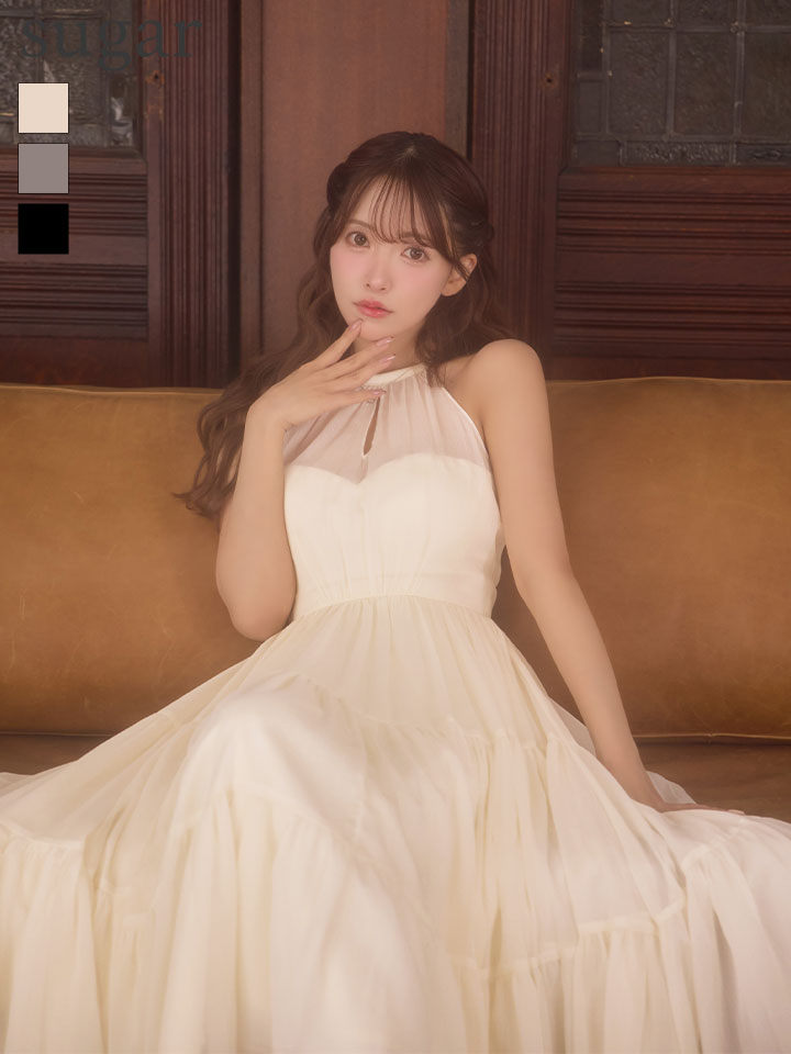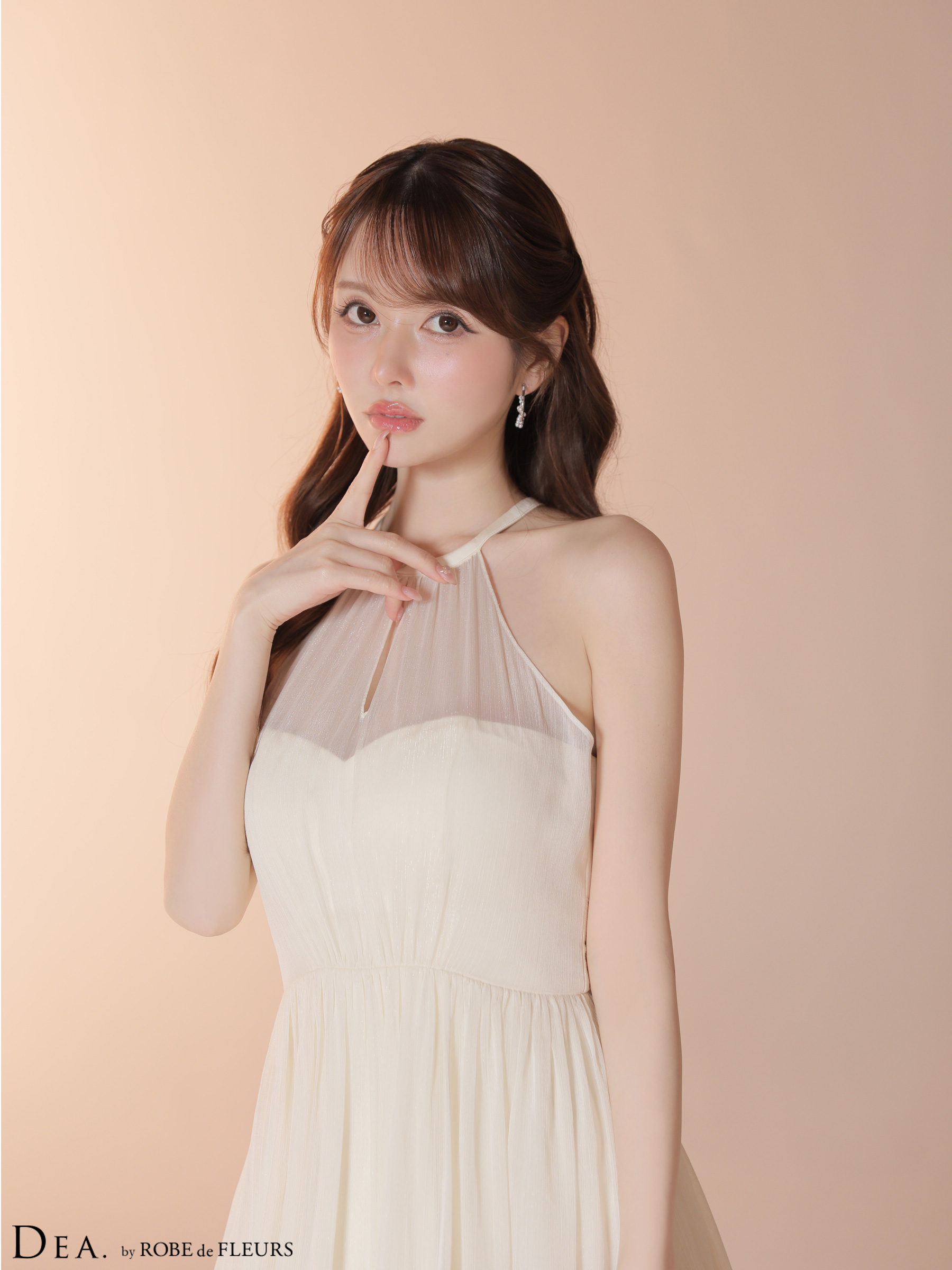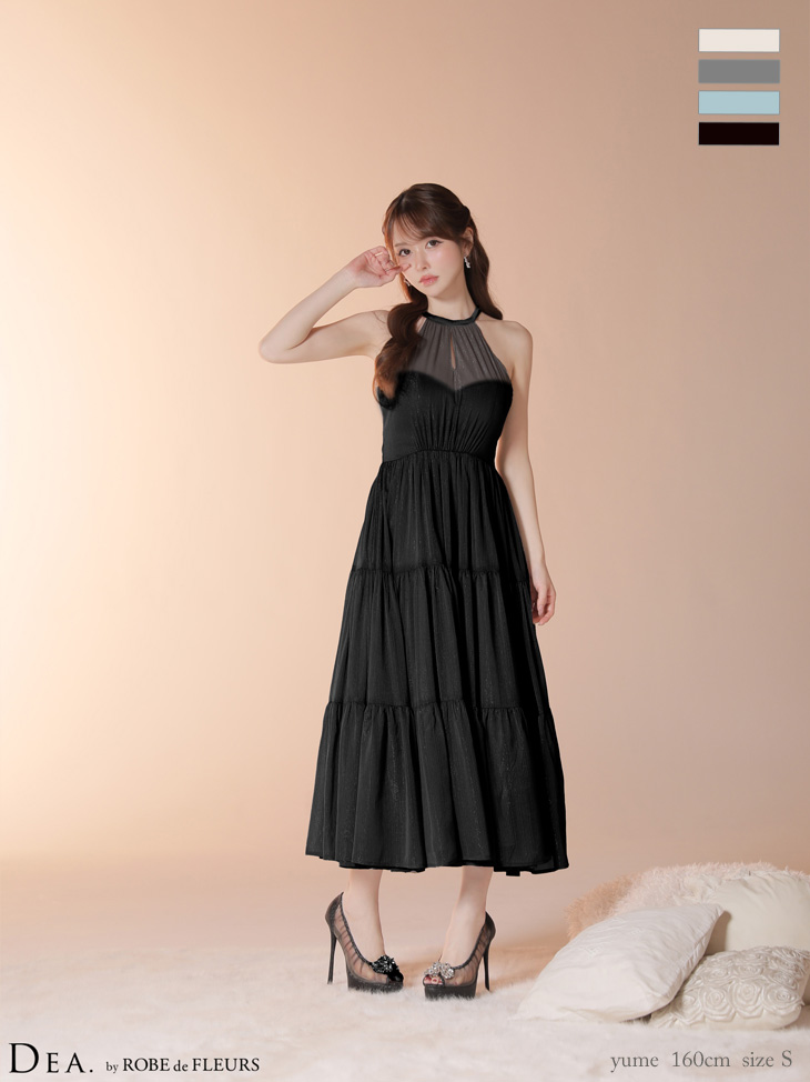 - > 【予約商品/12月下旬発送予定】Lサイズあり【DEA./ディア】ラメ/ シフォン/ ホルターネック/ シースルー/ シンプル大人系/ ミディアムドレス/ キャバドレス long[OF08]