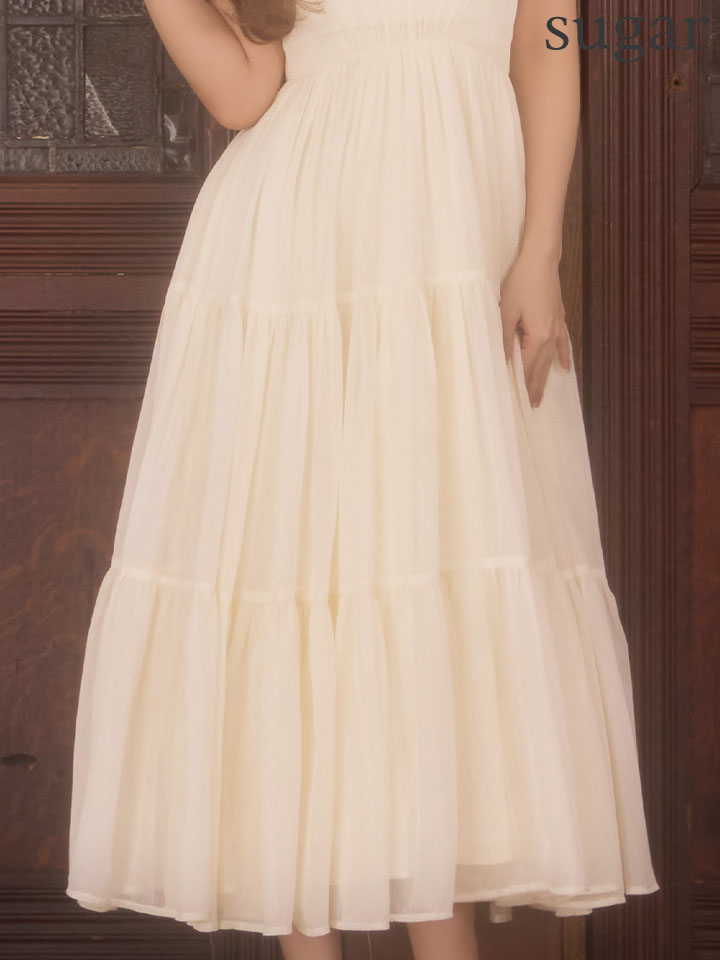 ハイウエストからの柔らかなティアードスカートはスタイルアップ効果も抜群。