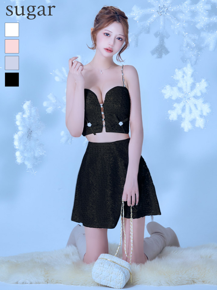 - > sugarコラボカラー・XSサイズあり【ROBE de FLEURS/ローブドフルール】サイドミニリボン/ スパンコール/ グロウ/ セットアップ/ フレア/ ミニドレス/ キャバドレス[OF08]