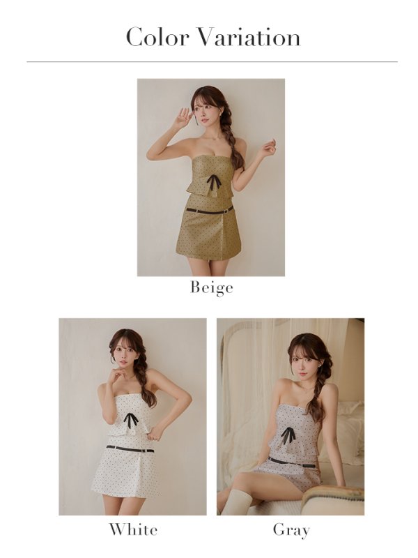 - > 【予約商品/12月上旬-12月中旬発送予定】XSサイズあり【ANGEL R/エンジェルアール】ベアトップ / フロントリボン / ベルト / ドット / セパレート / フレア / マイクロミニドレス / キャバドレス[OF2]