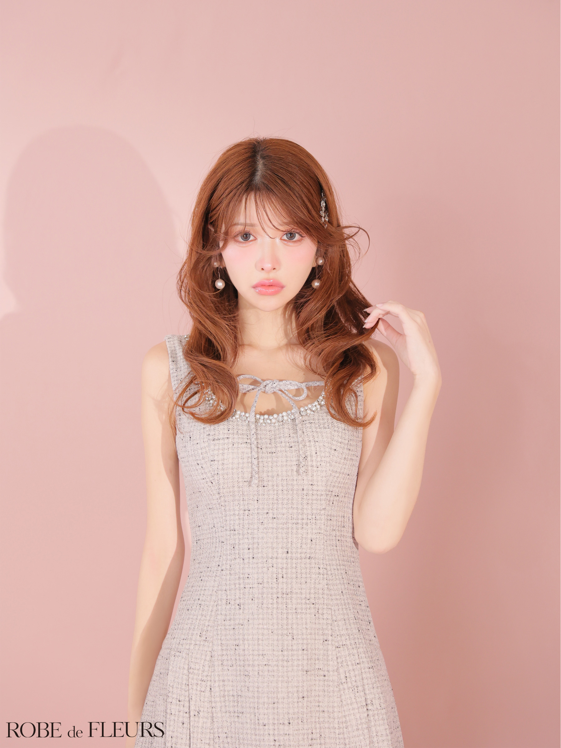 - > 【予約商品/12月下旬発送予定】XSサイズあり【ROBE de FLEURS/ローブドフルール】ラメツイード/ ビジューライン/ リボン/ フレア/ ミニドレス/ キャバドレス[OF08]