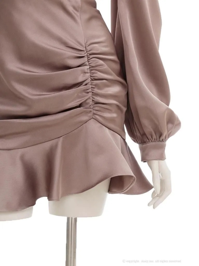 XSサイズあり【ANDY/アンディ】裾フリル/ ネックビジュー/ 袖あり/ 長袖/ ギャザー/ フレア/ ラインストーン/ バストカット/ アシンメトリー/ バックスリット/ ミニドレス/ キャバドレス[OF05]