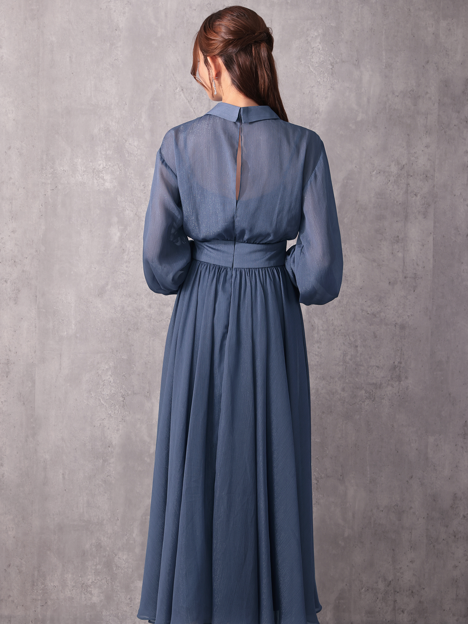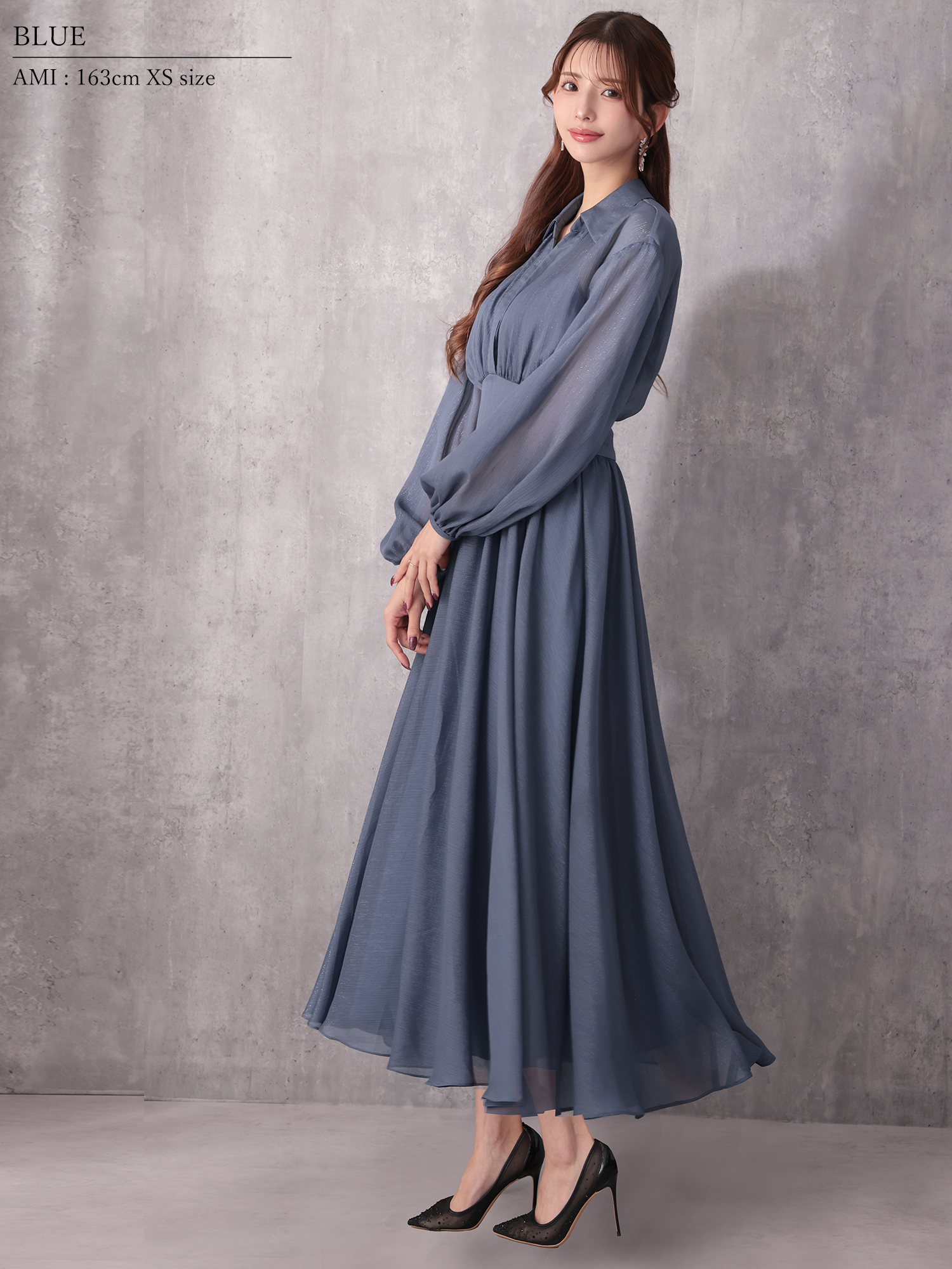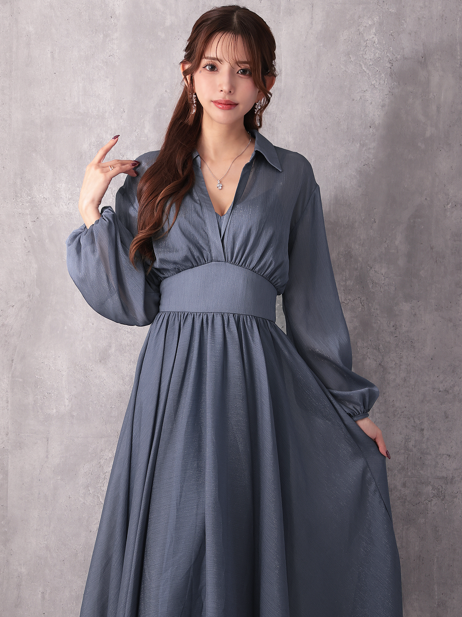 XSサイズあり【Veautt/ヴュート】【OF05】 ロングスリーブ/ ウエストマーク/ カラー/ フレア/ ミディアムドレス/ キャバドレス