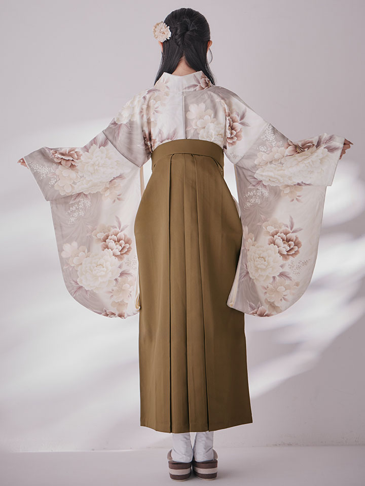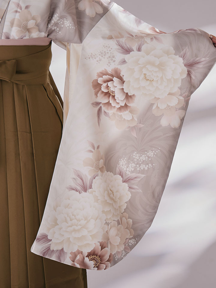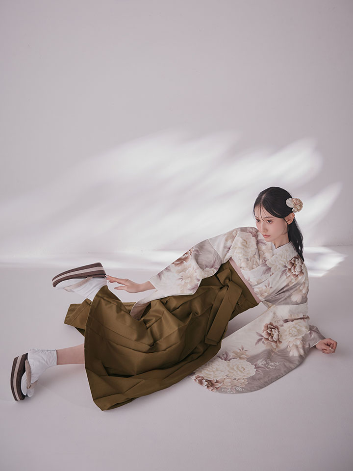 ブラウンとホワイトの優しい配色が可愛らしい印象の袴。。