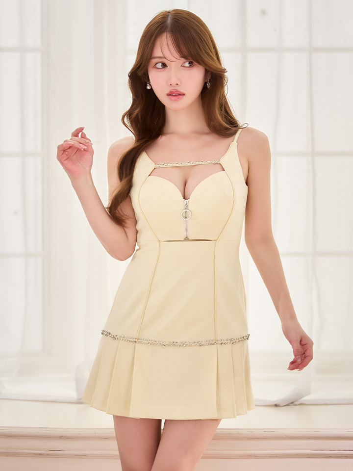 - > 【Jessica/ジェシカ】ビジュー/ バストジップ/ プリーツスカート/ キャミ/ フレア/ ミニドレス/ キャバドレス【HC03】