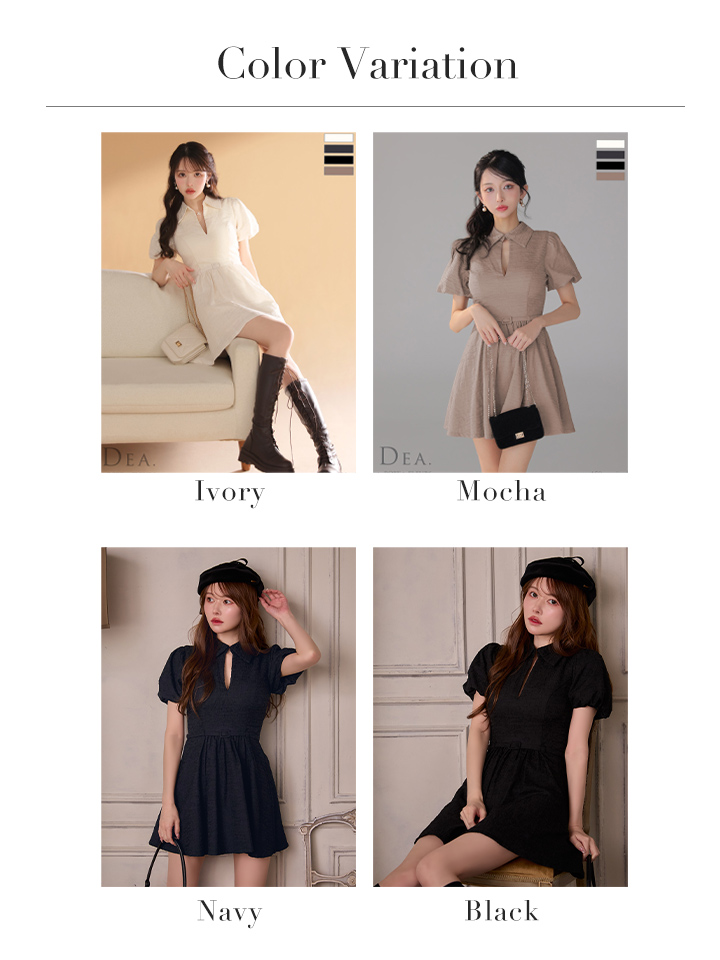 XSサイズあり【DEA./ディア】ワッフル素材/ クラシカル/ 襟付き/ フレア/ ミニドレス/ キャバドレス[OF08] [DE4319-B-S251218]