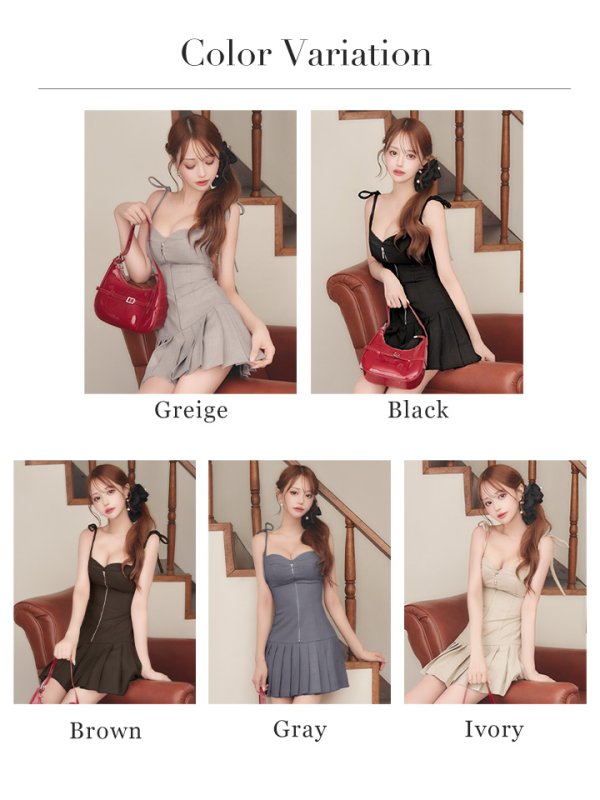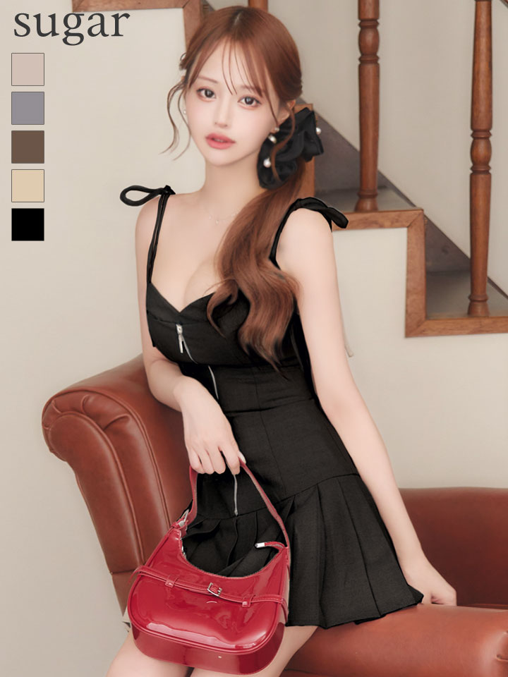 - > XSサイズあり【Glossy/グロッシー】肩リボン/ バストジップ/ フレア/ ミニドレス/ キャバドレス[OF08]